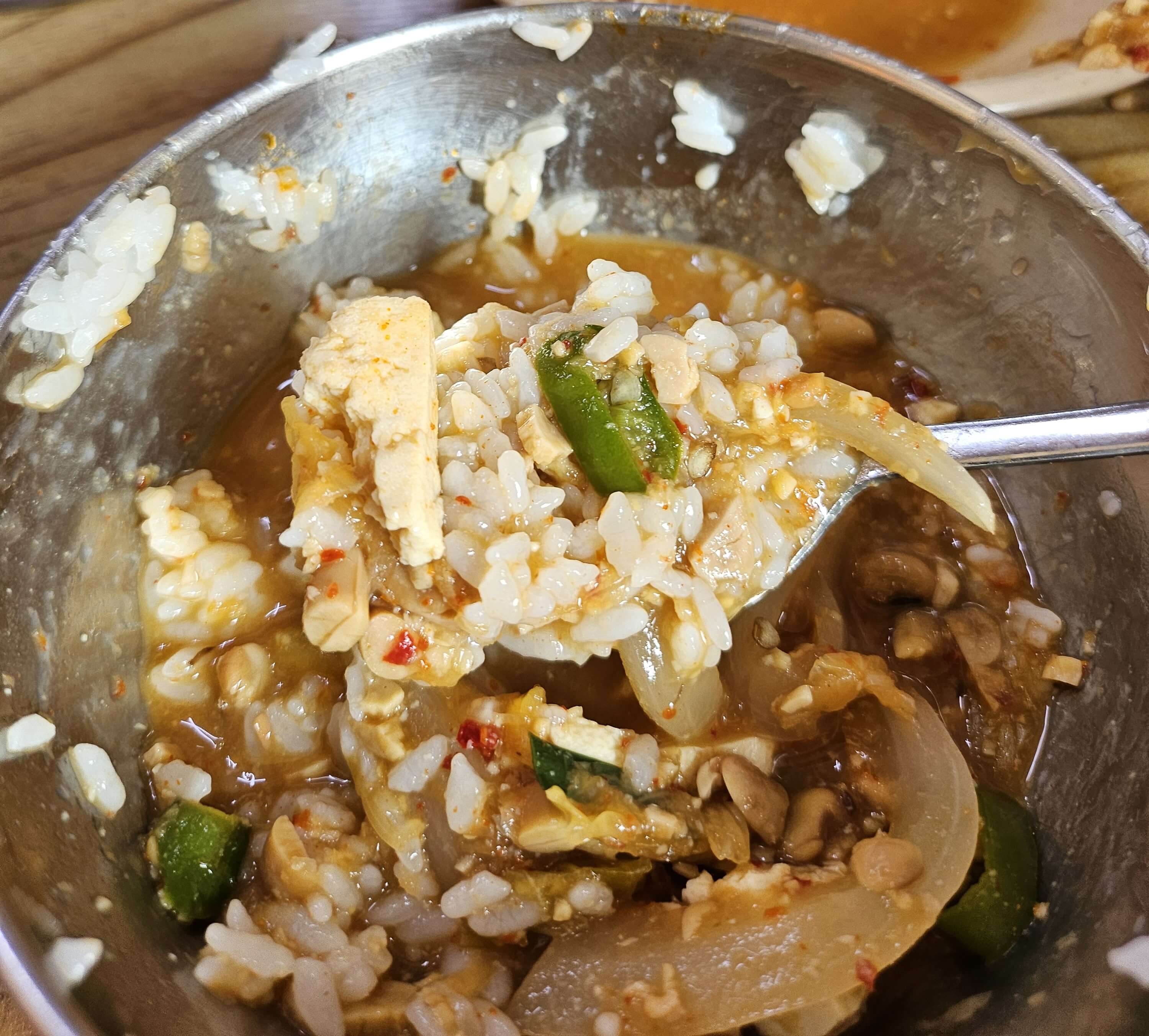 밥을 그릇에 퍼놓고 물을 부어준 후 숭늉을 만들어 놓고 마지막에 숭늉을 먹으려고 했지만 돌솥밥 두 공기를 먹으니 배가 너무 불러서 숭늉은 못 먹고 나왔습니다.