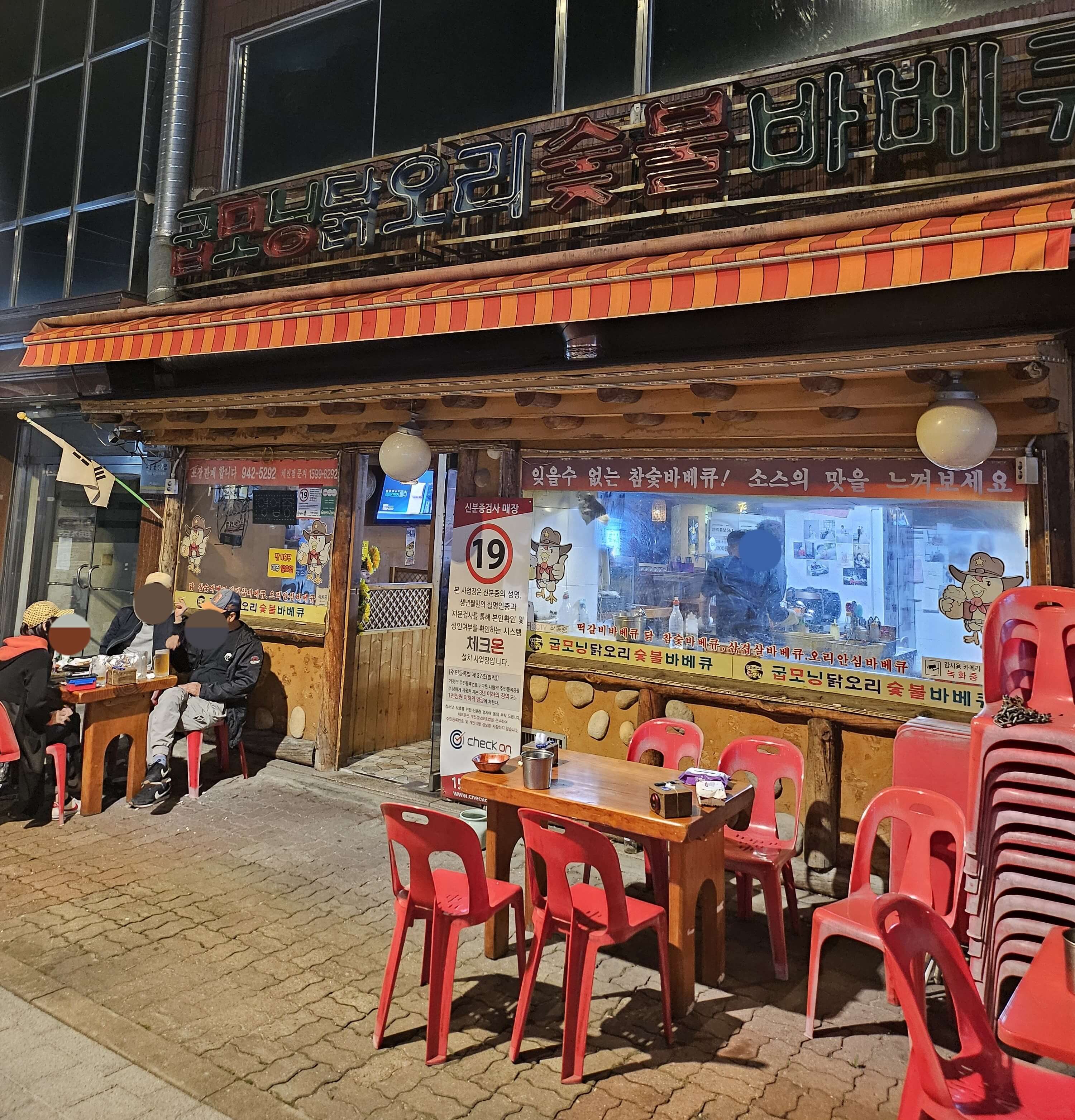 궃모닝숯불바베큐의 내부입니다. 내부는 토속적인 인테리어였습니다. 뭔가 전통주막느낌이 물씬 났습니다. 깔끔하지 못한 매장은 아니지만 오랫동안 운영이 되었던 가게다 보니 어쩔 수 없이 매장에 세월의 흔적이 남아있었습니다. 이런 분위기를 안 좋아하시는 분들도 있겠지만 저는 이런 분위기를 좋아해서 저는 만족스러웠습니다. 손님들이 많아서 바쁘신데도 사장님이 정말 친절하셨습니다. 같이 온 일행보다 먼저 도착을 해서 음식을 주문하고 기다리고 있었는데 정말 소심한 저도 사장님 덕분에 편하게 있을 수 있었습니다.