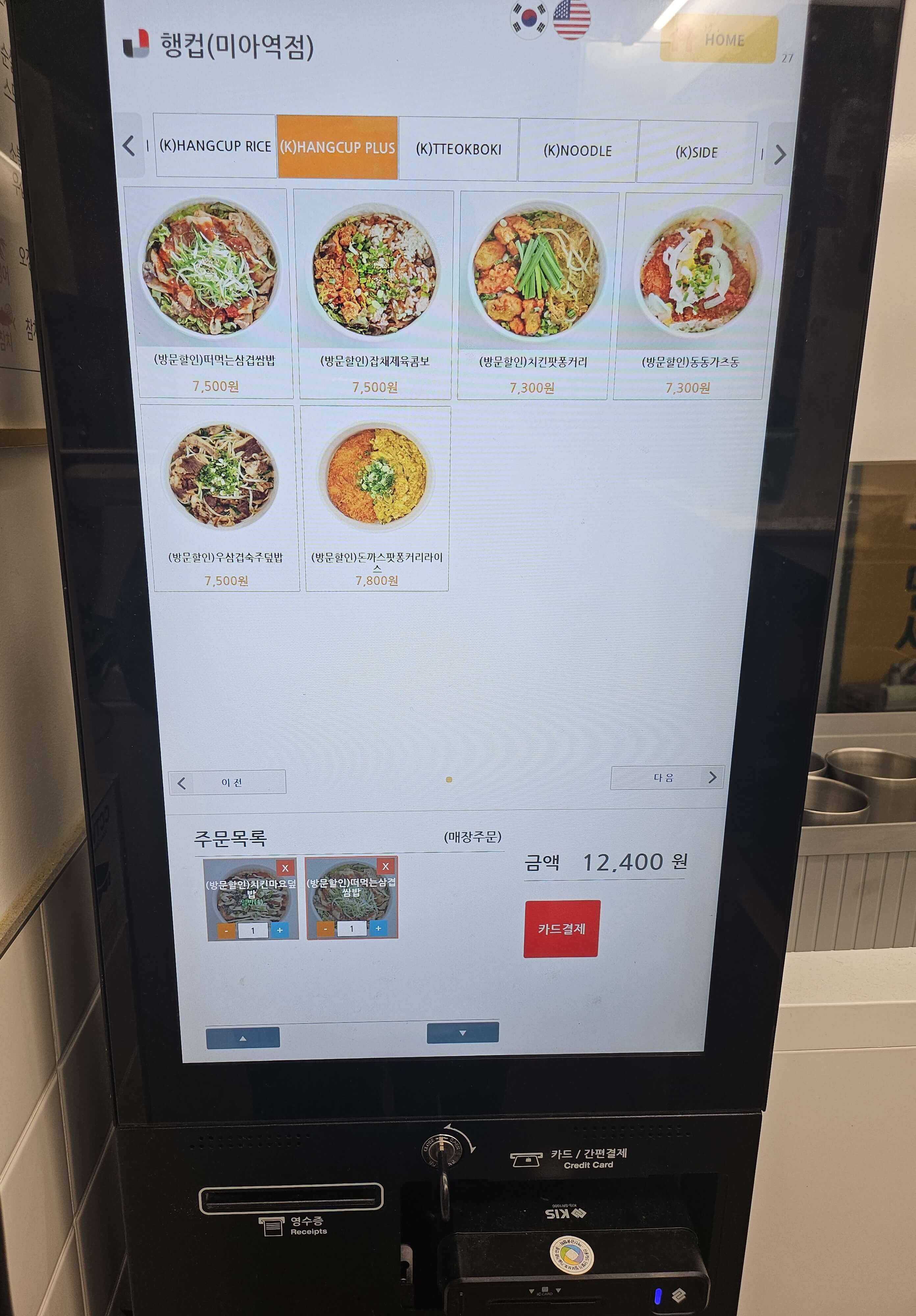 매장에서 식사를 하시게 되면 매장 입구 쪽에 있는 키오스크를 이용해서 주문을 하면 됐습니다. 매장에서 식사를 하게 되면 1,000원씩 할인이 가능했습니다.