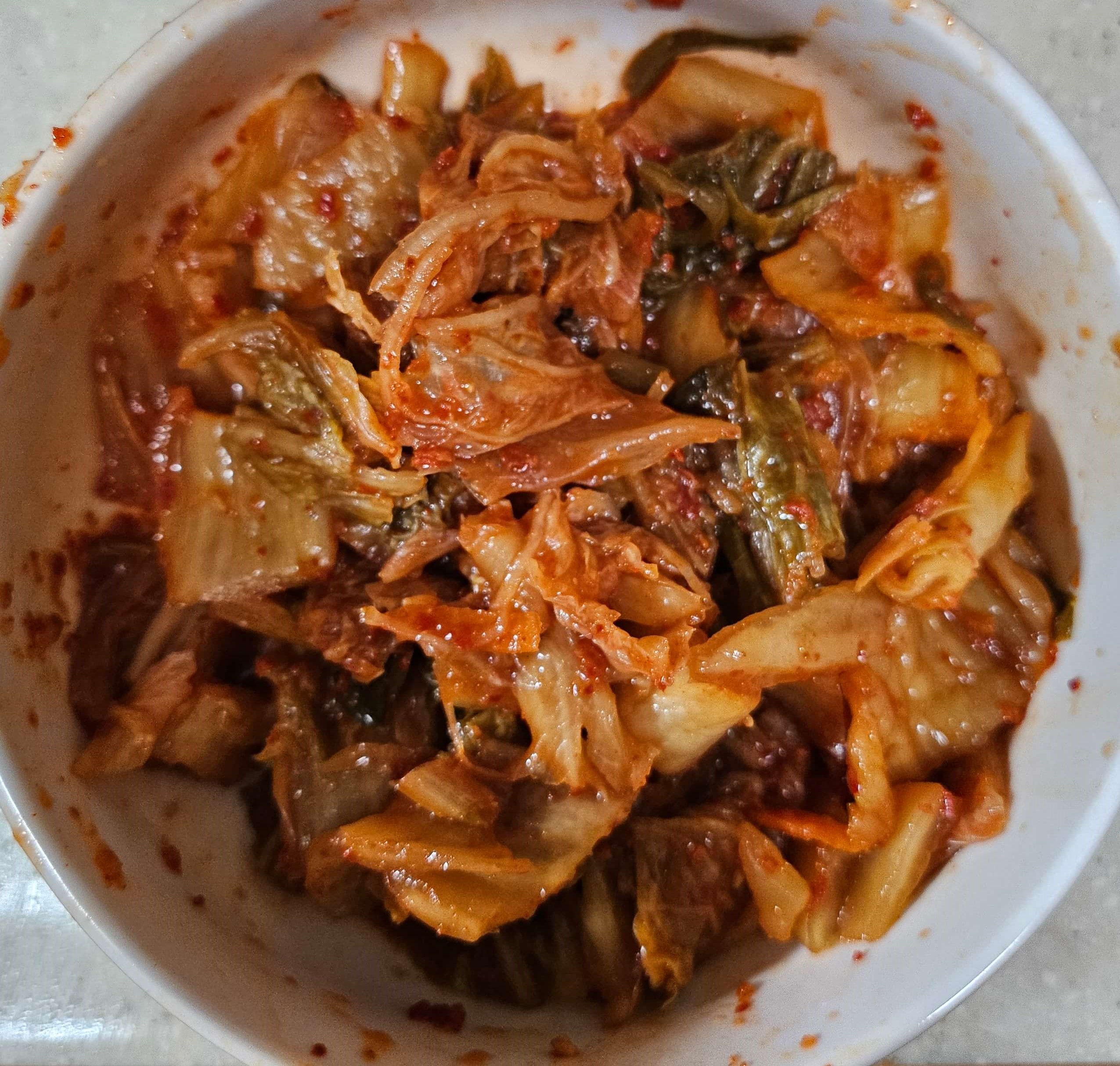 김치에도 간이 돼있기 때문에 기존에 라면 끓일 때 넣었던 물양 500ml보다 더 넣어줍니다. 저는 물 600ml를 넣어주고 김치를 반컵보다 더 넣어줬습니다. 대략 한 컵 넣어줬습니다.