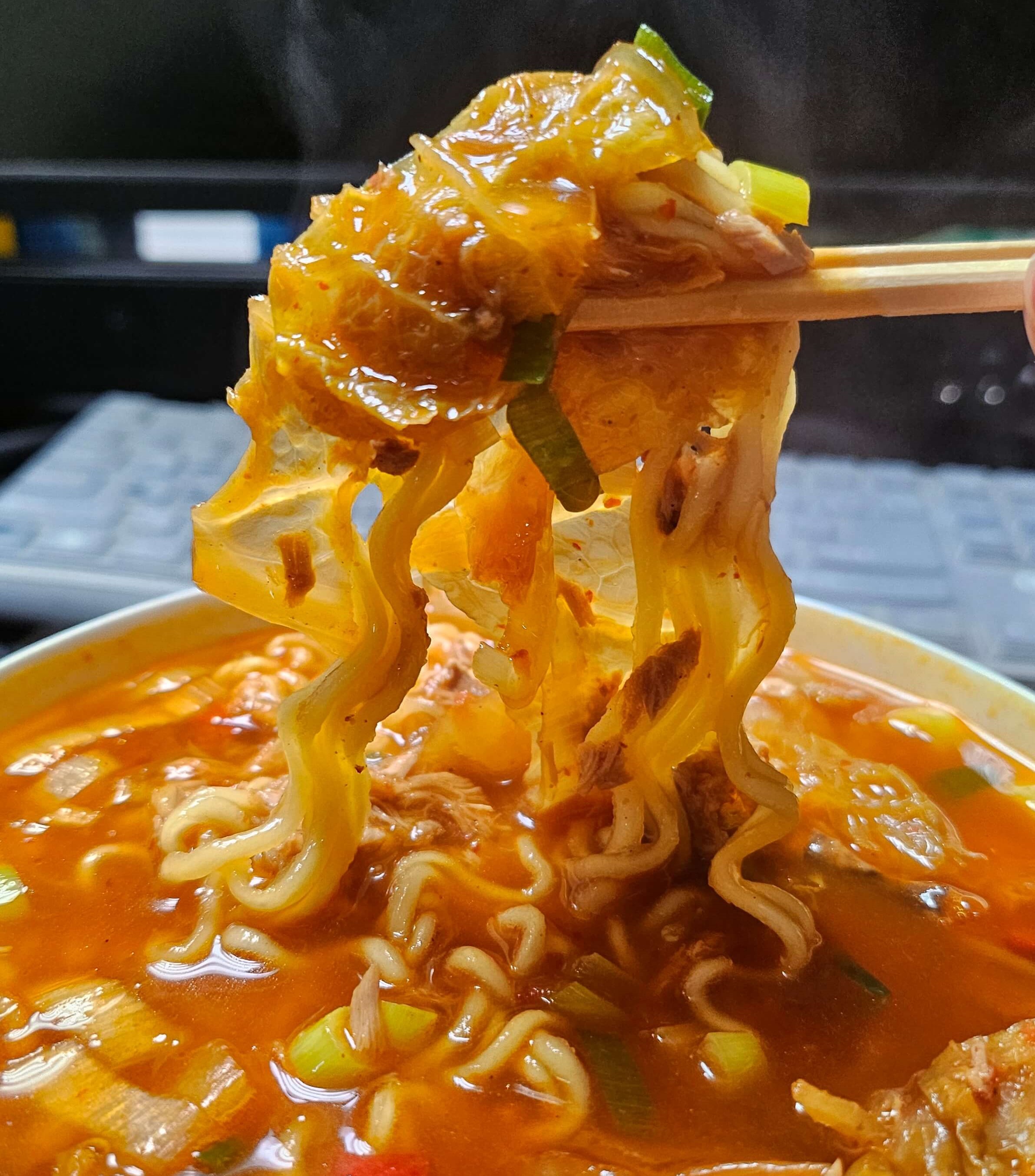 숙취가 있을 때는 빈속으로 있으면 이상하게 속이 계속 허 합니다. 그렇다고 해서 뭘 만들어 먹기에는 몸이 힘들고 배달을 시켜 먹기에는 다 못 먹고 해서 항상 라면을 찾게 됩니다. 이번에는 평소에 라면을 끓이는 방법에 추가 재료 몇 가지만 들어가는데도 해장하기에도 좋고 매운맛을 즐기시는 분들이라면 한 번쯤 만드시는 걸 추천하는 레시피입니다. 보통 해장라면이라고 하면 콩나물을 많이 넣어서 먹는데 이번에는 매운 라면에 김치와 참치만 추가했는데도 시원한 국물맛이 좋은 해장라면입니다. 라면만 끓일 수 있으면 누구나 만들 수 있을 수준의 조리방법이었습니다. 국물이 시원하고 참치로 인해서 감칠맛이 좋아져서 한 그릇 뚝딱 가능했습니다.