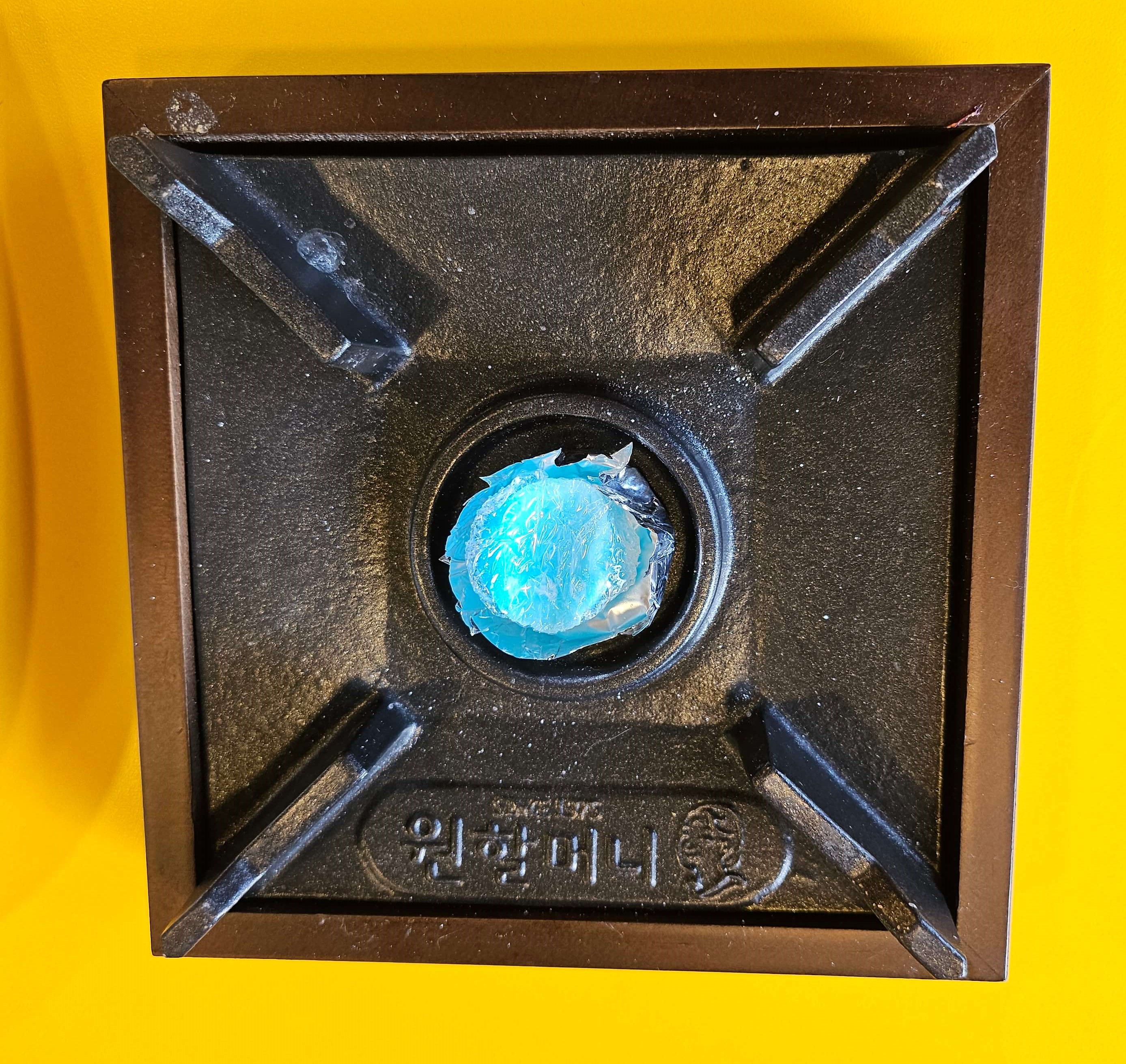 테이블마다 수저, 젓가락, 냅킨이 있었습니다. 음식을 주문하고 나니 앞접시, 물티슈, 물, 물컵, 콩나물 국을 가져다주셨습니다. 보쌈을 끝까지 따뜻하게 먹을 수 있게 도와주는 화로도 가져다주셨습니다.