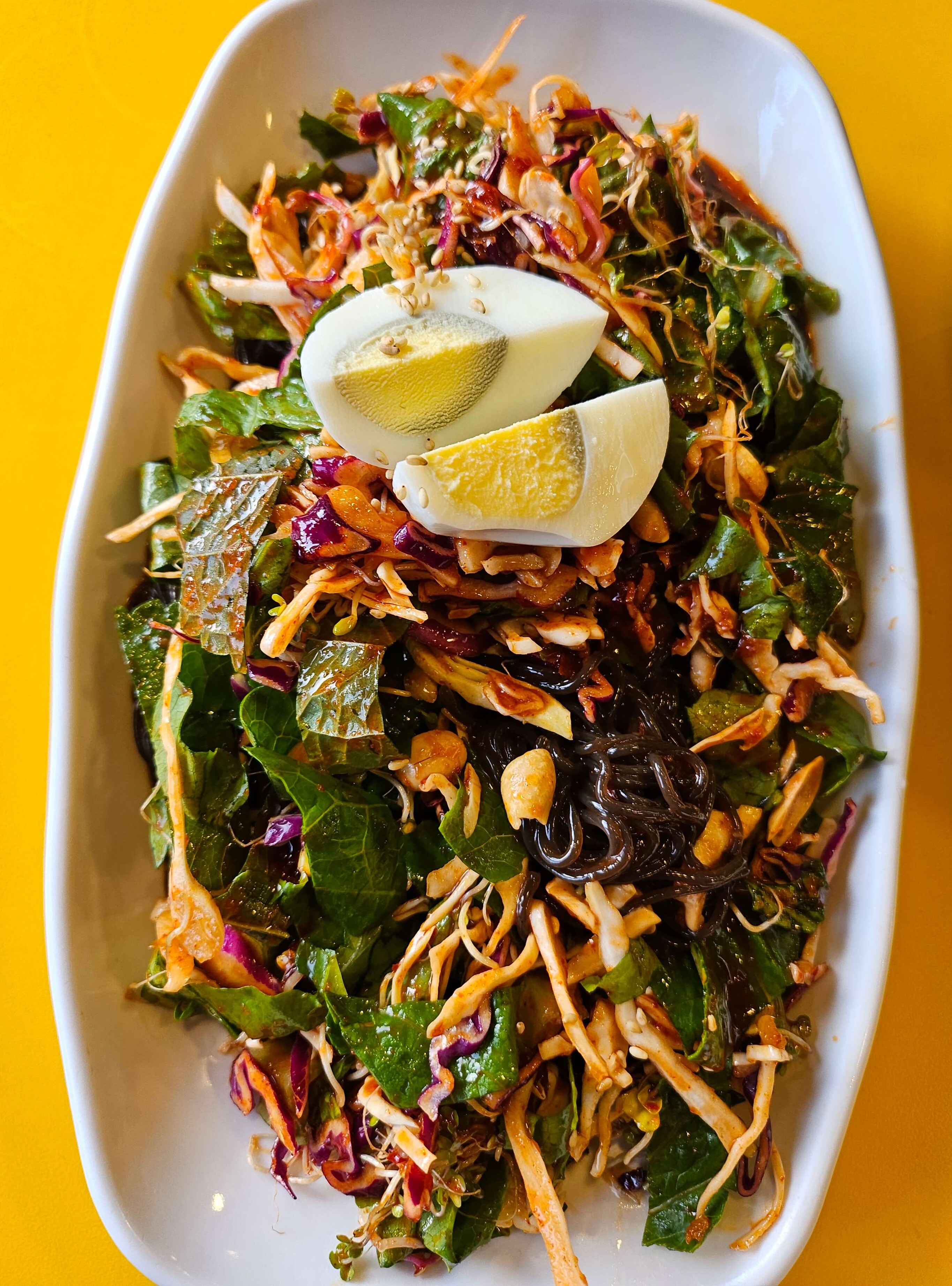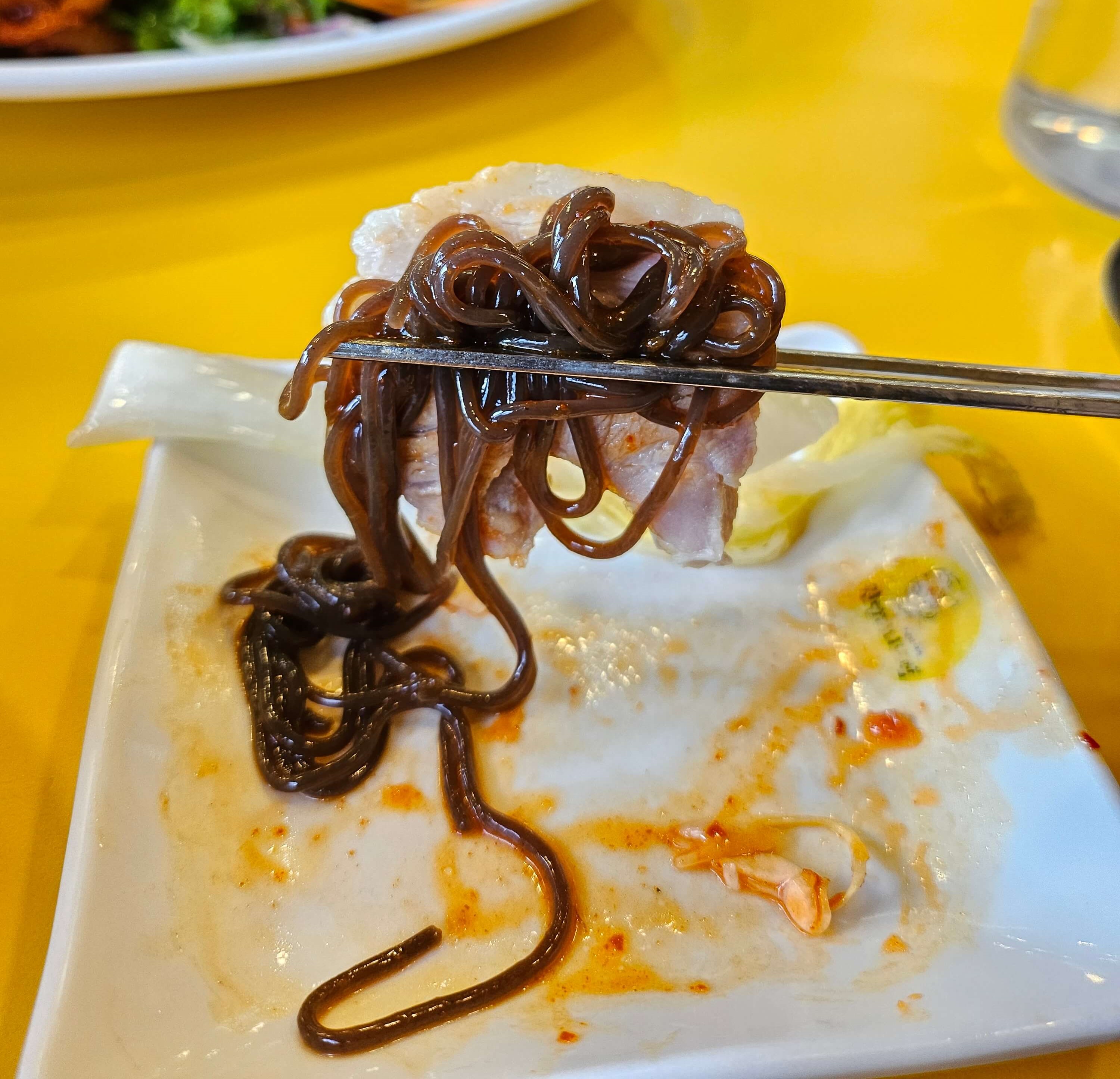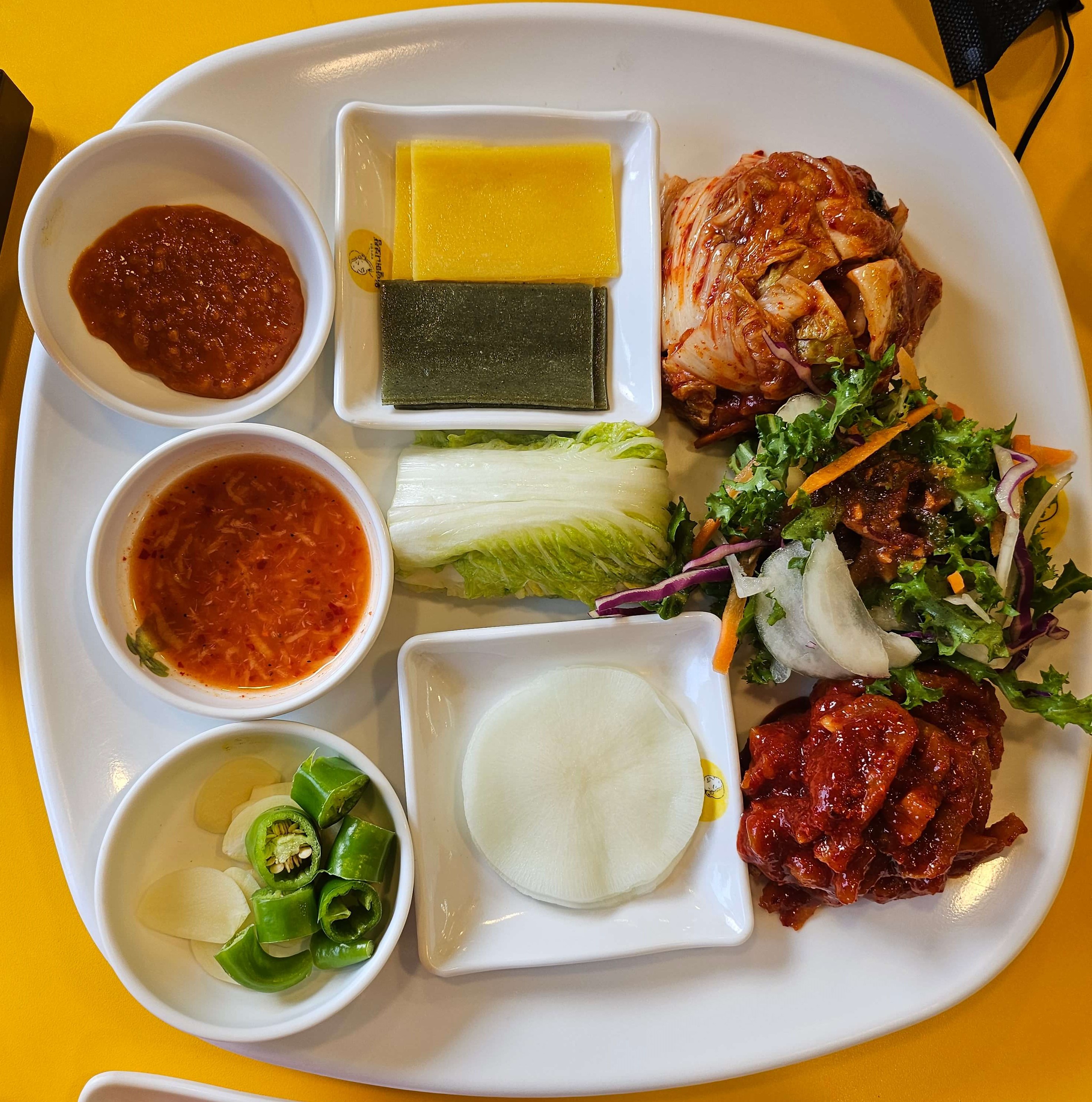 실속원쌈에 포함되어 있는 새싹쟁반무침면입니다. 신선한 야채들도 풍성하게 있었고 간도 너무 세지 않아서 보쌈과 함께 먹으니 정말 잘 어울렸습니다. 면도 잘 삶아졌는데 쫄깃함을 넘어서 탄력감과 쫀득함이 느껴졌습니다. 맵기는 저 같은 매운걸 못 먹는 사람도 딱 맛있게 먹을 수 있을 정도의 맵기였고 소스는 새콤 달콤 약간 매콤한 맛이었습니다.