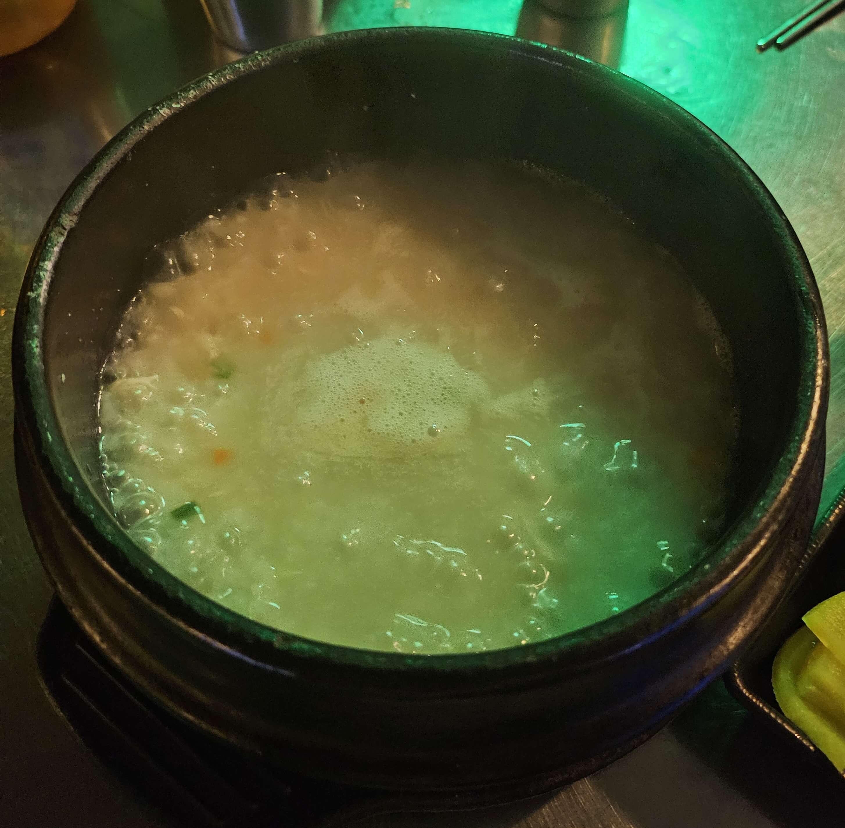 서비스안주라고 하기엔 큰 뚝배기에 닭죽이 나왔습니다. 저희는 이날에 빈속으로 방문을 한 건데 음식 나오기 전까지 먹기 좋았습니다. 그리고 간도 너무 심심하지도 않고 딱 좋은 간이어서 소주안주로도 최고였습니다.