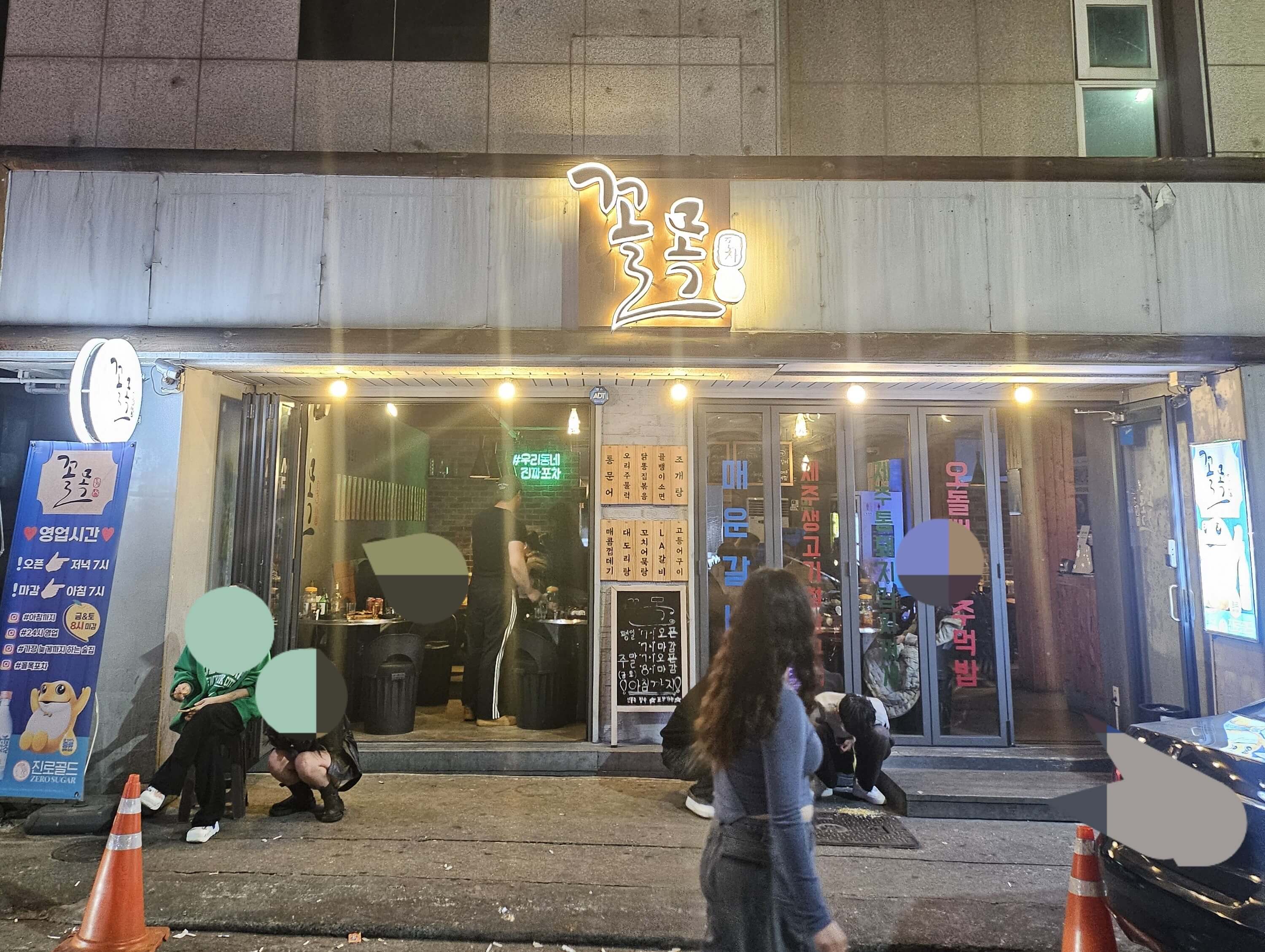쉬는 날 면허를 딴 김에 친한 동생이 운전연수를 해준다고 해서 강릉을 다녀왔습니다. 강릉까지 온 김에 술 한잔하고 자고 일어나서 술 깨고 다시 서울로 돌아가기로 했습니다. 하지만 너무 늦은 시간에 도착을 해서 여는 가게가 많이 없었습니다. 그래도 영업 중인 가게들 사이에서 아침 7시까지 영업을 하고 가장 사람 많은 곳으로 방문을 해봤습니다. 바로 꼴목포차 교동점입니다. 내부에는 손님들이 너무 가득 있어서 사진을 못 찍었습니다. 그래서 외부에서 찍어봤는데 외부에서만 봐도 손님들이 많은 게 느껴집니다. 꼴목포차 교동점은 20대 젊은 손님들이 주 고객층입니다. 그래서 약간 동네 핫플 술집 느낌이 물씬 났습니다.