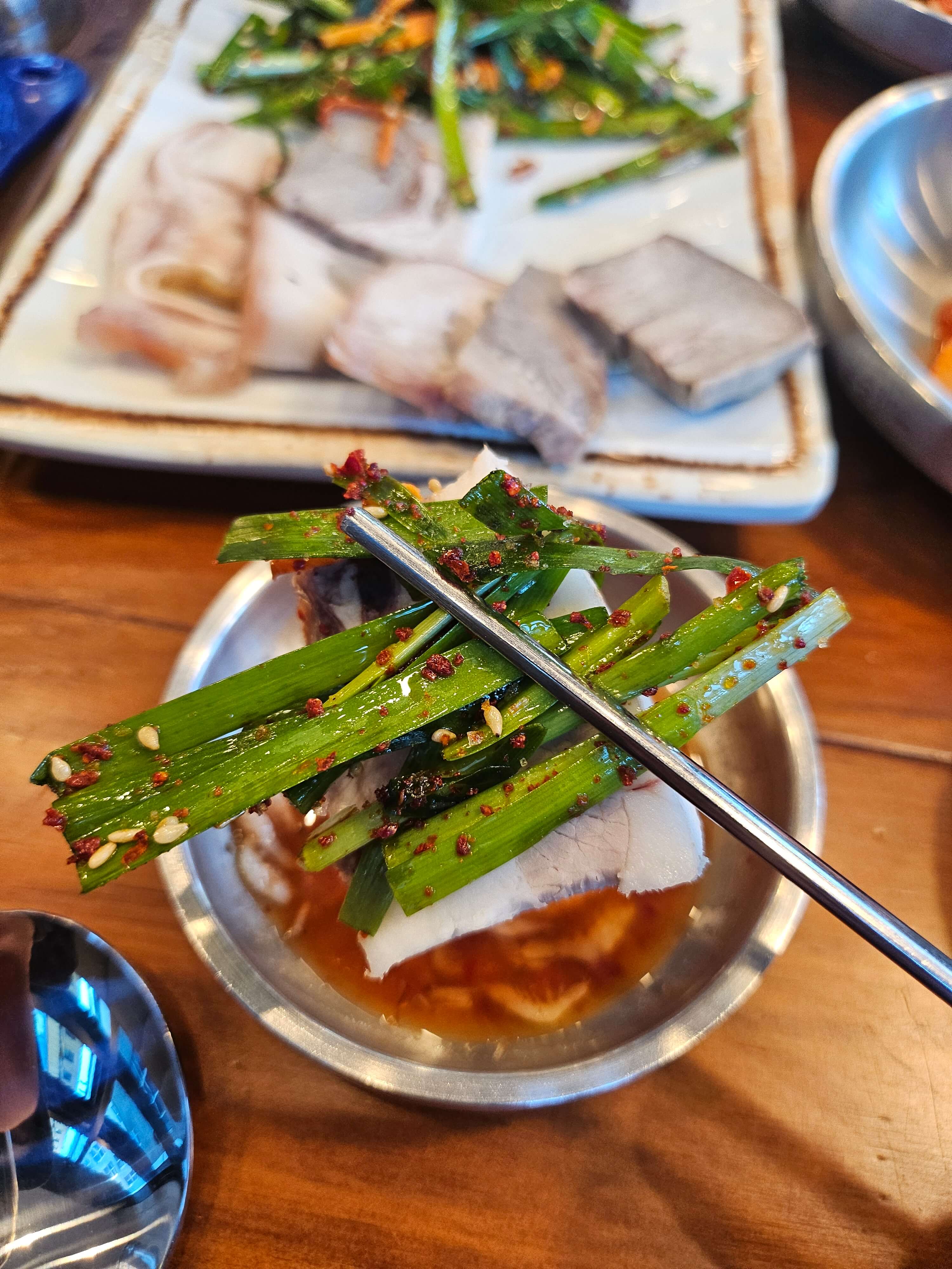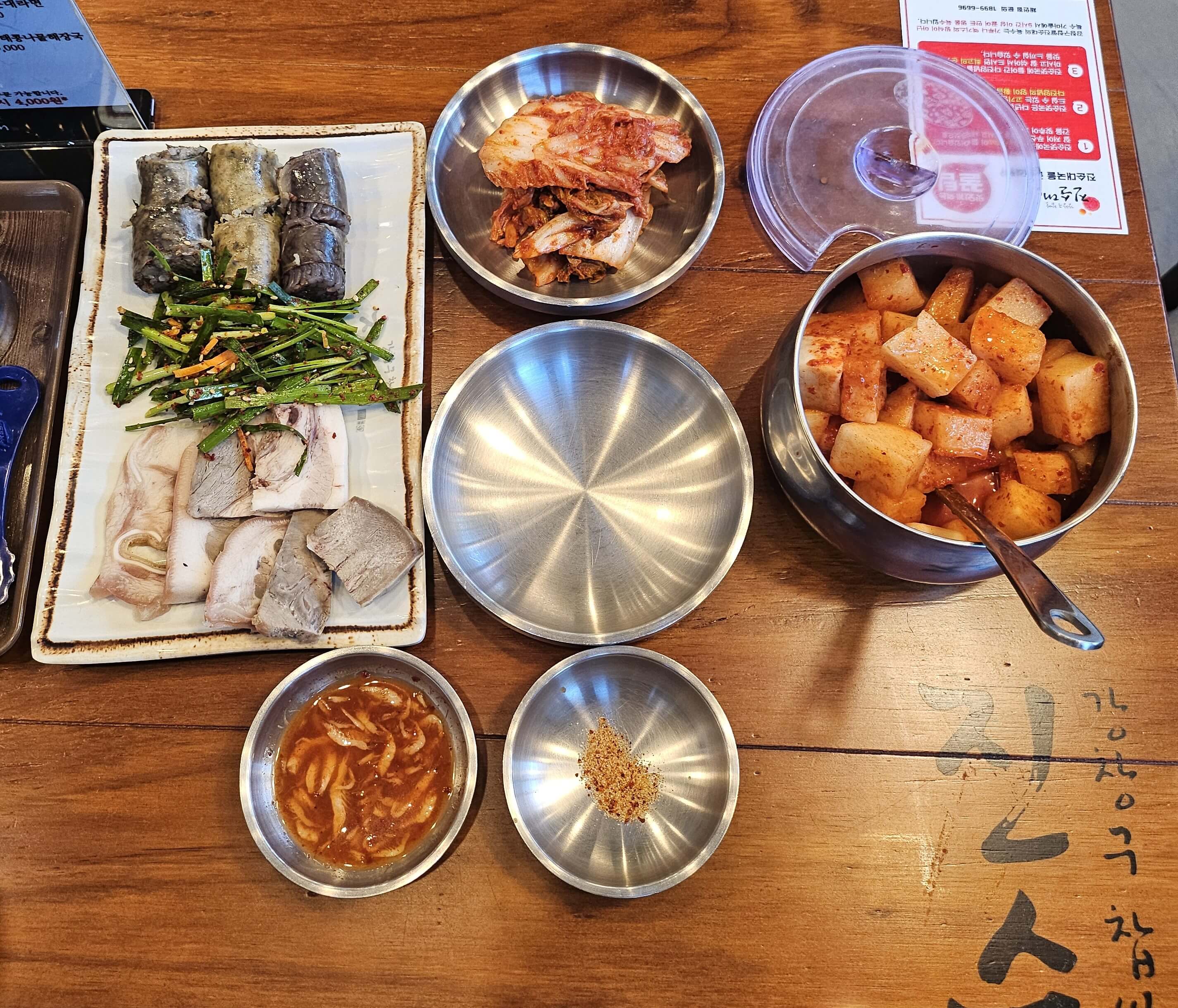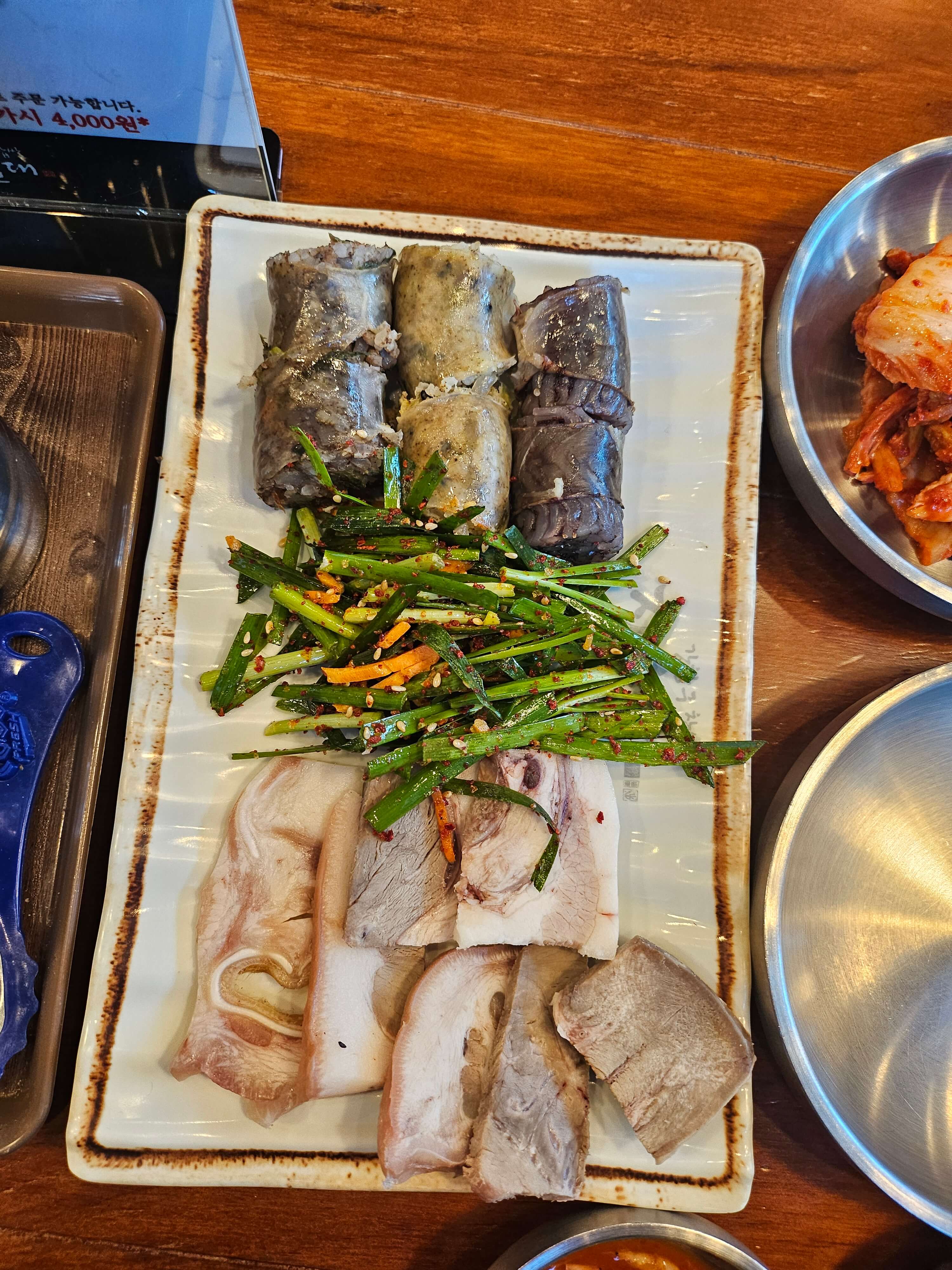 정식에 포함되어 있는 편육과 순대는 솔직히 말하면 양이 적은 편이지만 4,000원이라는 가격을 생각하면 괜찮다고 생각이 들었습니다. 그리고 저는 개인적으로 정식에 포함되어 있는 부추무침이 정말 맛있었습니다. 참기름 향이 강한 부추무침이었는데 새콤달콤한 부추무침을 좋아하시는 분들이라면 별로 안 좋아할 만한 맛이긴 하지만 저는 간도 적당하고 고소한 참기름향이 나는 부추무침을 맛있게 먹었습니다. 정식 추가는 반주하실 때 안주용으로 추가하기 좋다고 생각이 들었습니다.