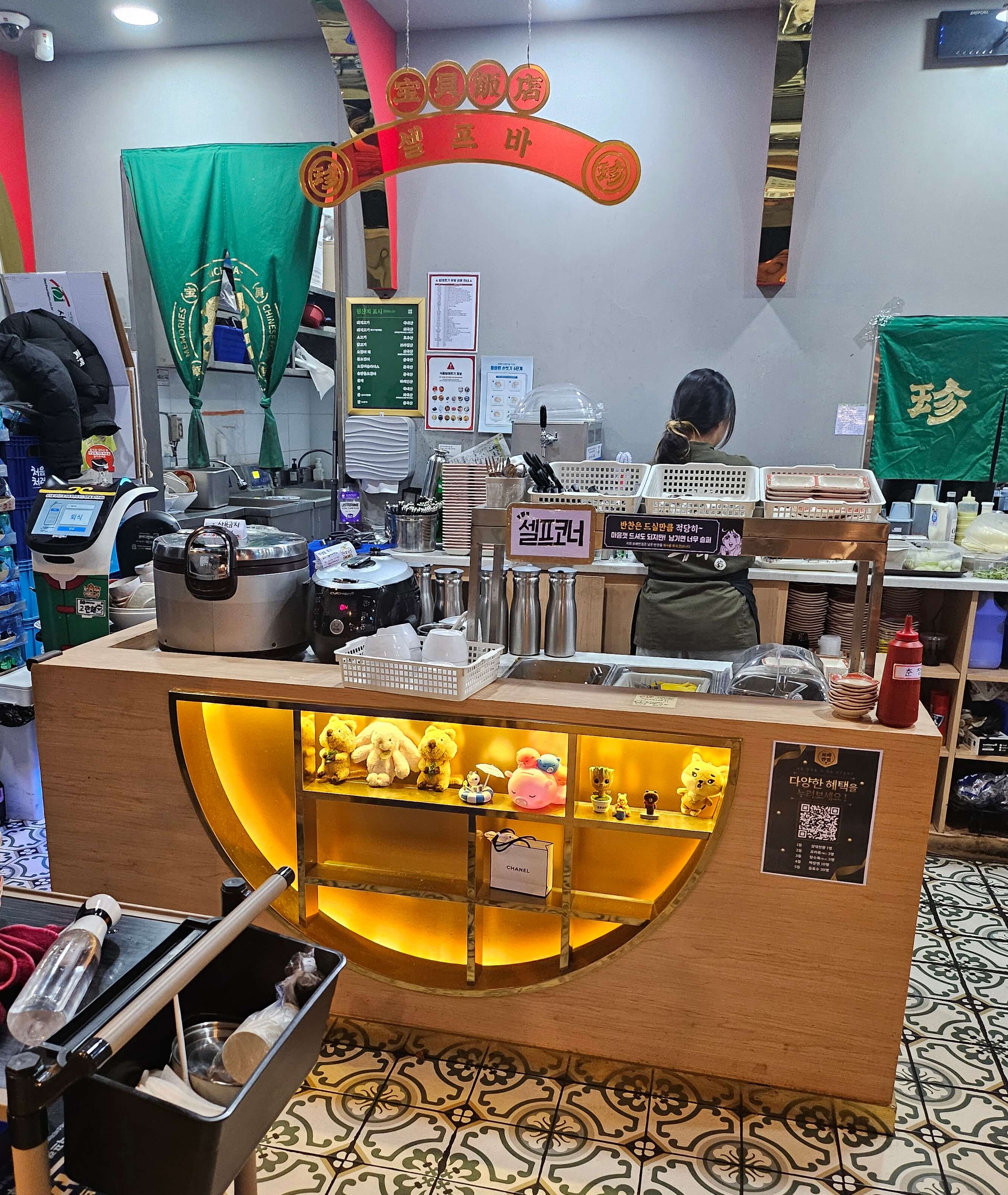 보배반점 수유점은 손님이 많아서 셀프코너가 더러울 수도 있지만 직원분께서 수시로 셀프코너를 계속해서 닦고 정리하다 보니 셀프코너 상태도 깔끔했습니다. 그런 모습을 보니 보배반점 수유점은 청결에 신경 쓰는 게 느껴졌습니다. 참고로 잘 보이는 곳 한쪽에 앞치마도 배치되어 있었습니다. 그리고 보배반점은 서빙 로봇도 있었습니다. 직원분과 로봇이 같이 서빙을 하니 음식 나오는 속도도 빨랐고 서빙로봇이 있는 매장을 아직은 많이 못 봤는데 신기하기도 했습니다.