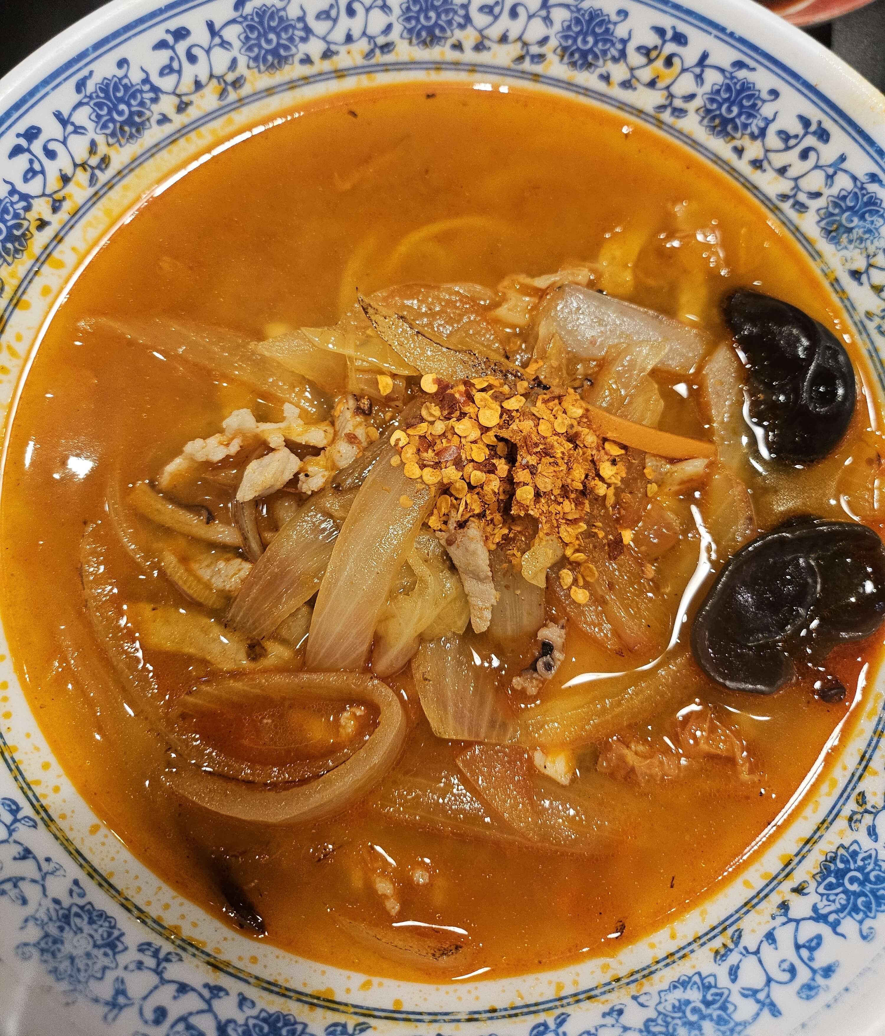 제가 주문한 보배짬뽕입니다. 보배반점은 화교분이 만드는 완전 중국 느낌의 중화요리가 아닌 한국식 느낌의 중화요리였습니다. 그래서 보배반점 처음글에서 말했듯이 남녀노소 누구나 좋아할 만한 맛의 집이라고 소개한 거였습니다. 보배짬뽕은 해장에 최고일 거라고 생각이 들었습니다. 저는 이날에 이상하게 매운 게 당겨서 자리에 배치되어 있었던 매운 고춧가루를 뿌려서 먹었습니다.