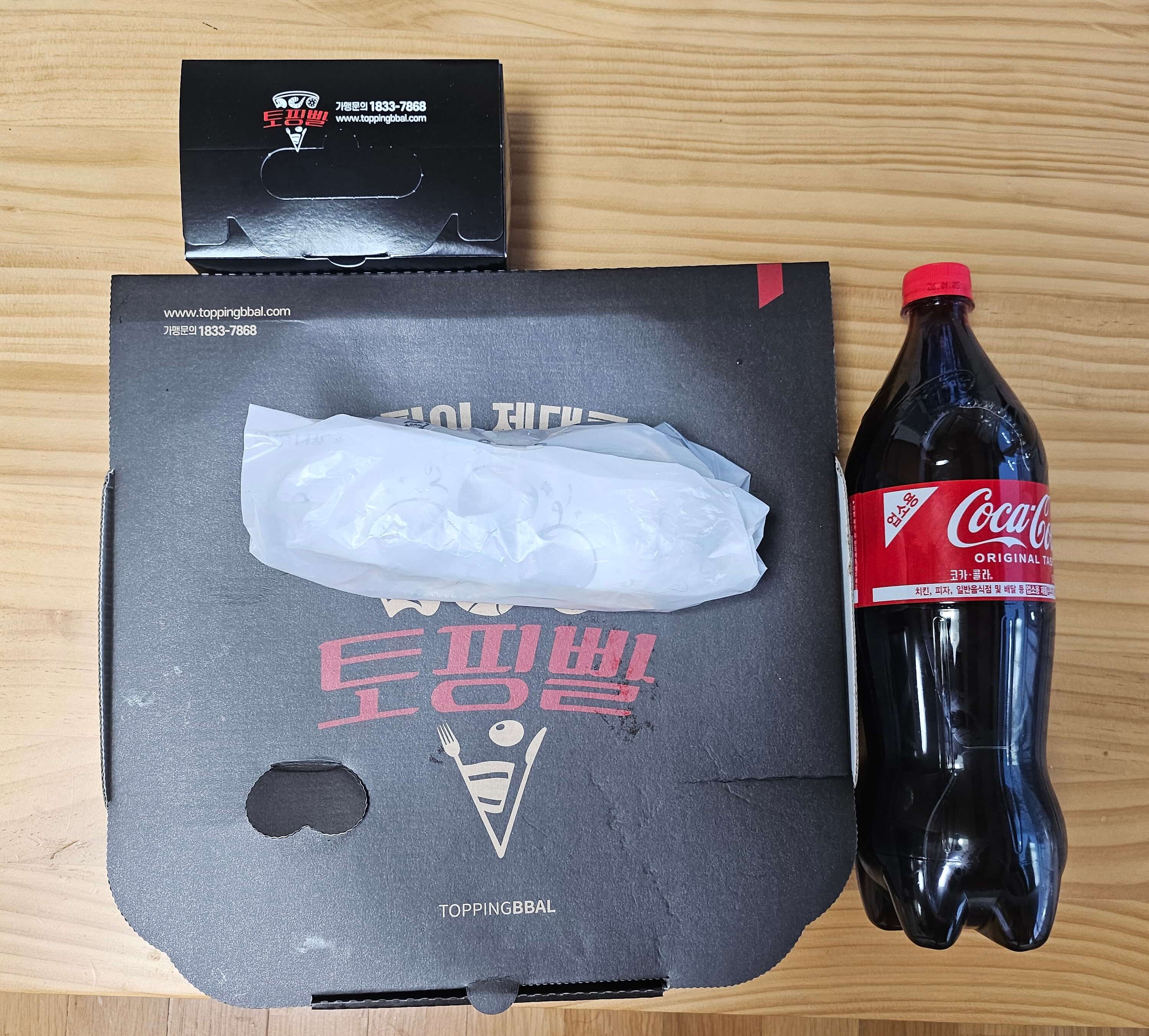 핫봉도 윤기 나게 잘 구워져 있었습니다. 냄새부터 매콤한 향이 올라오는 게 느끼한 피자를 먹다가 하나씩 먹는 게 좋았습니다. 추가로 콜라 1.25l+핫봉(5p) 추가가 5,500원 밖에 안 했습니다.
