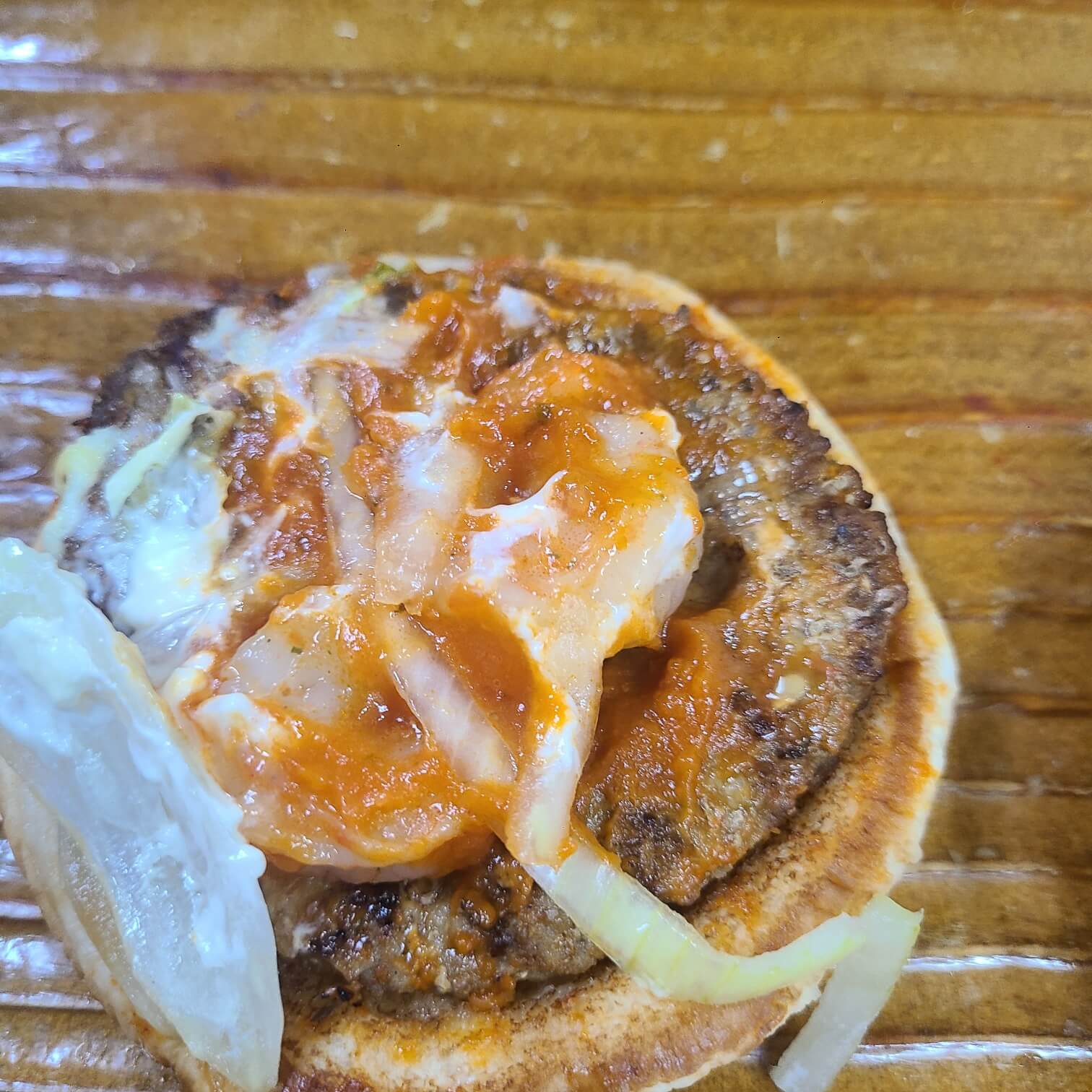통새우와퍼답게 매콤한 소스가 넉넉히 발라져 있었습니다.기본적으로 소고기 패티에 갈릭 페퍼 새우, 스파이시 토마토소스가 있는 햄버거 메뉴입니다. 리뷰를 보니 별도로 새우를 추가해서 먹으면 더 맛있다고 하는데 확실히 추가를 안 해도 맛있지만 약간의 새우의 통통한 식감이 부족한데 추가해서 부족한 새우 식감을 채워준다면 더 맛있을 것 같습니다.