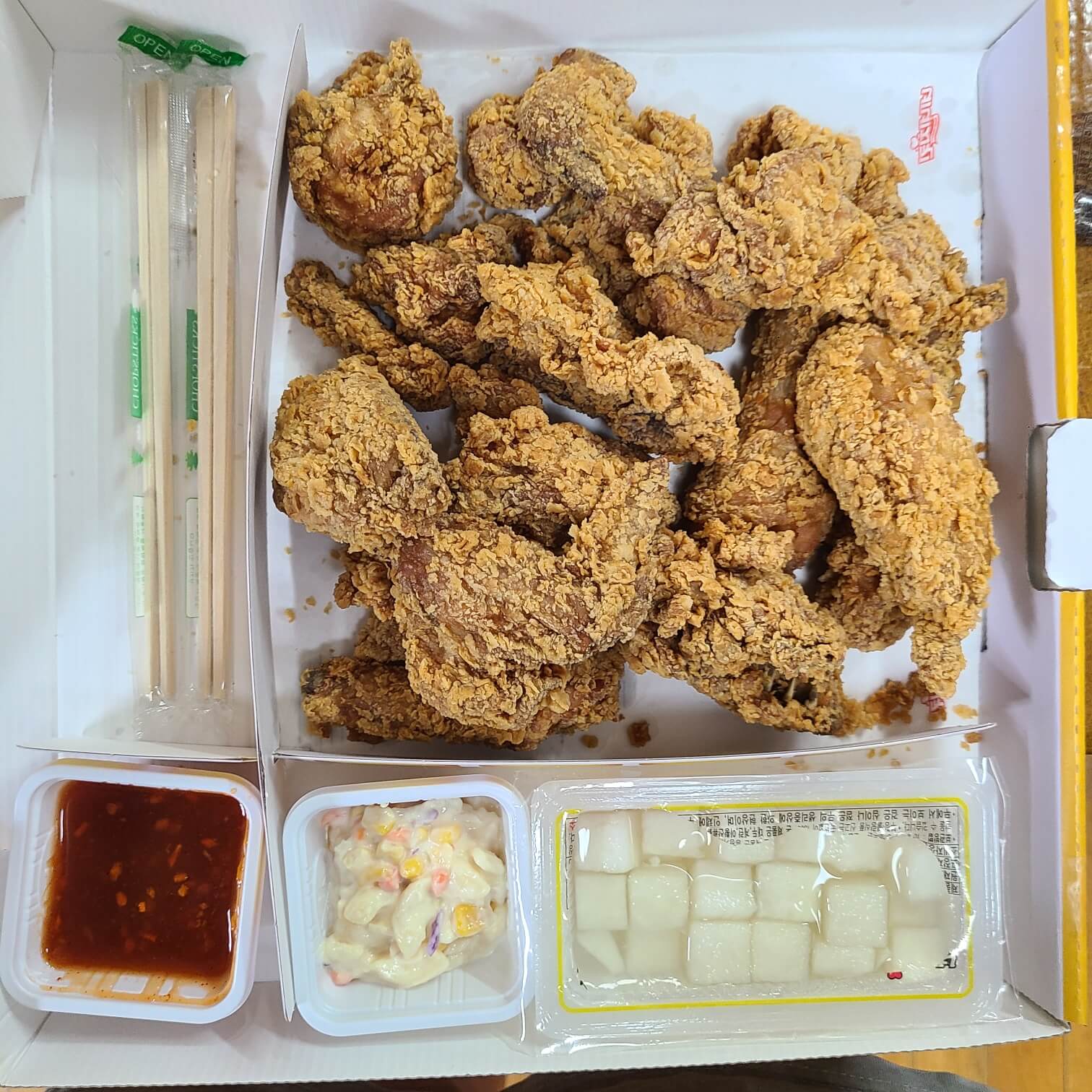 저녁으로 칼로리 높은 치킨은 부담스럽지만 덕분에 배불리 먹어 잠도 잘 왔습니다.