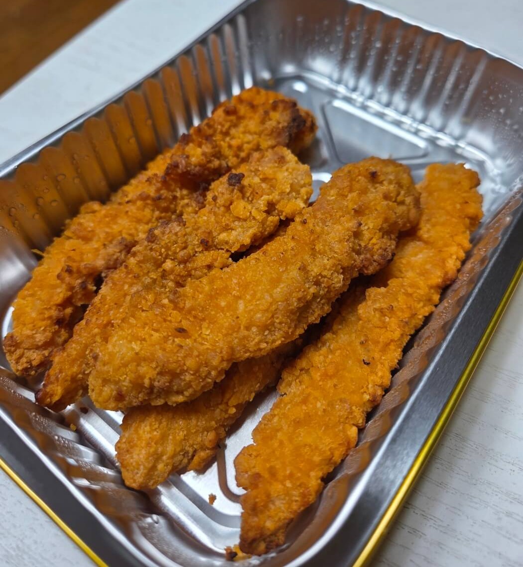 수유 엄지 척 피자의 치킨텐더입니다. 수유 엄지 척 피자의 치킨텐더는 5,000원 밖에 안하는데 큼지막한 치킨텐더가 5개들어가 있었습니다. 수유 엄지척 피자의 치킨텐더는 수제느낌의 치킨텐더는 아니었지만 염지도 잘 되어 있고 살짝 매콤한 맛이 도는 게 술안주, 아이들이 좋아할 만한 치킨텐더였습니다. 수유 엄지 척 피자의 치킨텐더는 정말 바삭하게 튀겨져 있었습니다. 수유 엄지척피자 치킨텐더는 에어프라이기로 튀긴 게 아닌 딱 기름으로 튀긴 맛있는 치킨텐더였습니다. 수유 엄지 척 피자는 피자 양도 넉넉해서 먹다가 치킨텐더가 남는다면 초등학생 입맛인 저한테는 밥반찬으로 좋을 것 같고 간식 또는 브런치 메뉴, 가끔 맥주가 당길 때 맥주안주로도 좋을 것 같은 치킨텐더였습니다.