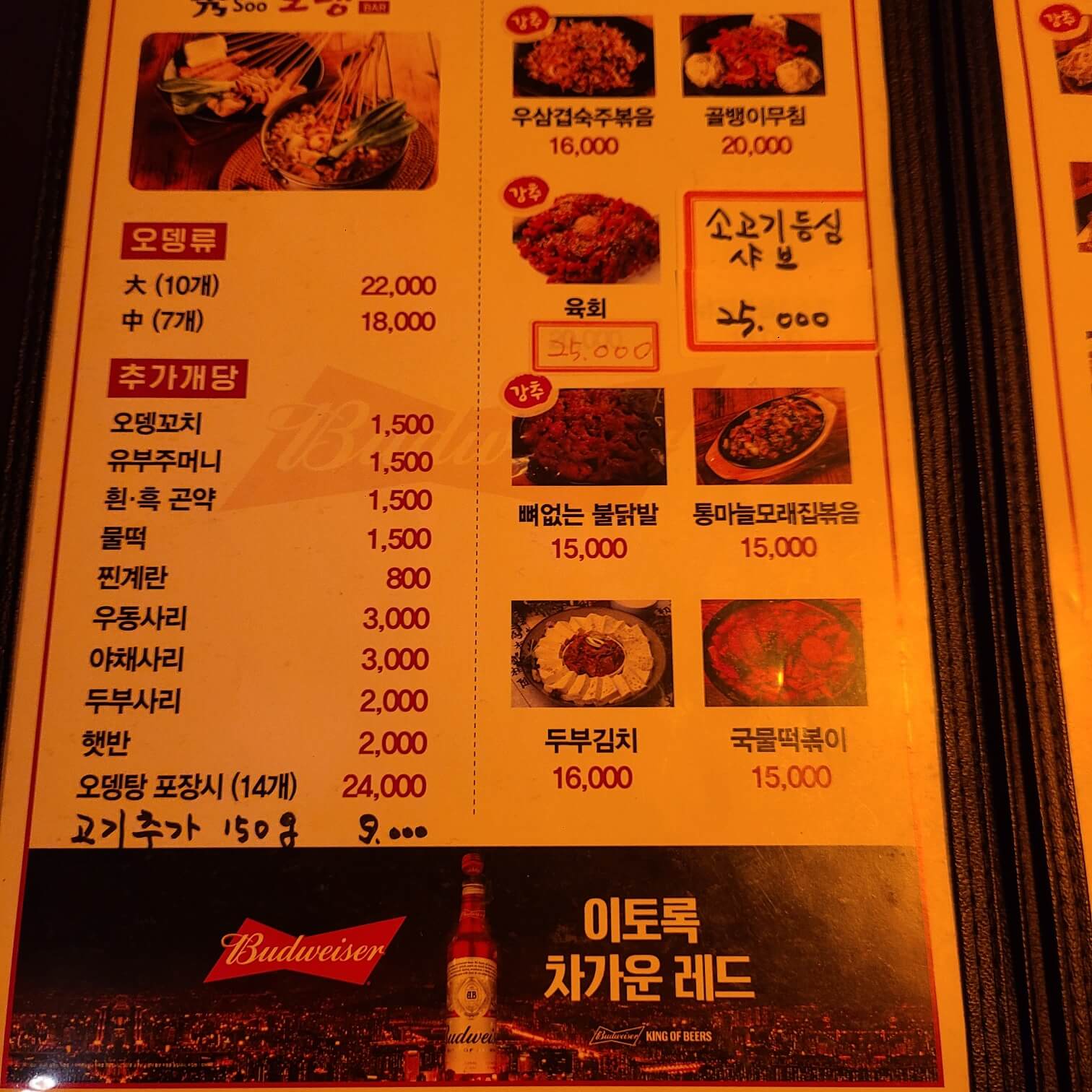 수유역에서 1차를 하시고 2차로 오뎅바가 생각나시면 조금 걸어서 여기 오뎅바를 방문해보시는 것도 좋고, 미아역 주민이라면 집 근처 포차 가실 때나 혼술 하러 가실 때 수오뎅바를 한번 가보시는 것도 추천드립니다.