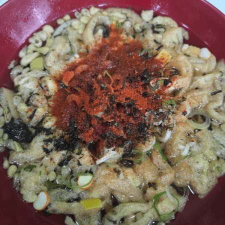 신선유부의 유부우동 위에는 매장 상호명답게 유부도 넉넉하게 들어가 있었고 김가루, 대파 등등 넉넉하게 들어가 있었습니다. 유부 우동에 유부가 얼마나 많이 들어가 있냐면 면발이랑 유부양이랑 비슷할 정도로 유부 양이 많았습니다. 저는 이날 약간 매콤하게 먹고 싶어서 고춧가루를 넉넉하게 뿌려서 먹었습니다. 우동 면발은 쫄깃하고 국물도 담백했습니다. 짭짤한 우동 국물맛과는 달랐습니다. 그렇다고 해서 우동 국물이 진하지 않다는게 아니라 진한데 뭔가 자극적이지 않은 국물 맛이었습니다. 저는 처음에 우동과 유부초밥을 함께 먹기위해서 미니 유부모듬으로 주문한거였는데 우동 하나만 먹어도 배부를 정도로 양이 많아서 양이 적으신 분은 우동만 주문하셔도 될 것 같습니다.