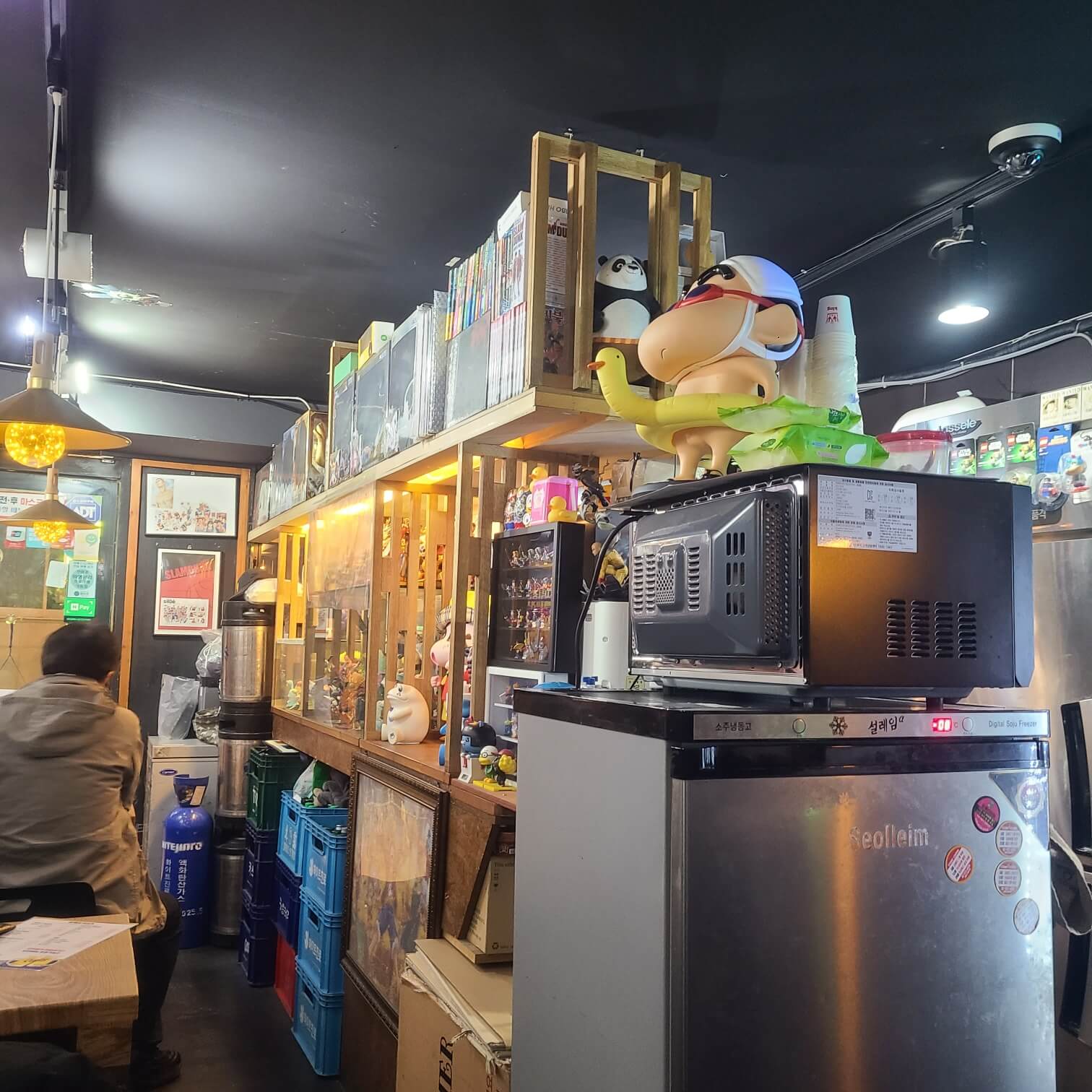 2차로 가서 정확한 시간은 기억이 안 나지만 늦은 시간인데도 손님들이 많았습니다. 내부는 성신여대점만 그런지 모르겠지만 만화 캐릭터들로 도배되어 있었습니다. 제가 좋아하는 원피스 피규어들이 쭉 펼쳐져 있고 안쪽 스크린에서 만화가 나오고 있었습니다. 이 감성도 나쁘지 않았습니다. 매장에는 6명이 앉을 수 있는 테이블 하나와 4명이 앉을 수 있는 테이블이 여러 개 있었습니다. 매장이 크진 않지만 화장실도 내부에 있어서 좋았고 청결 여부도 나쁘지 않았습니다. 하지만 남녀공용입니다.