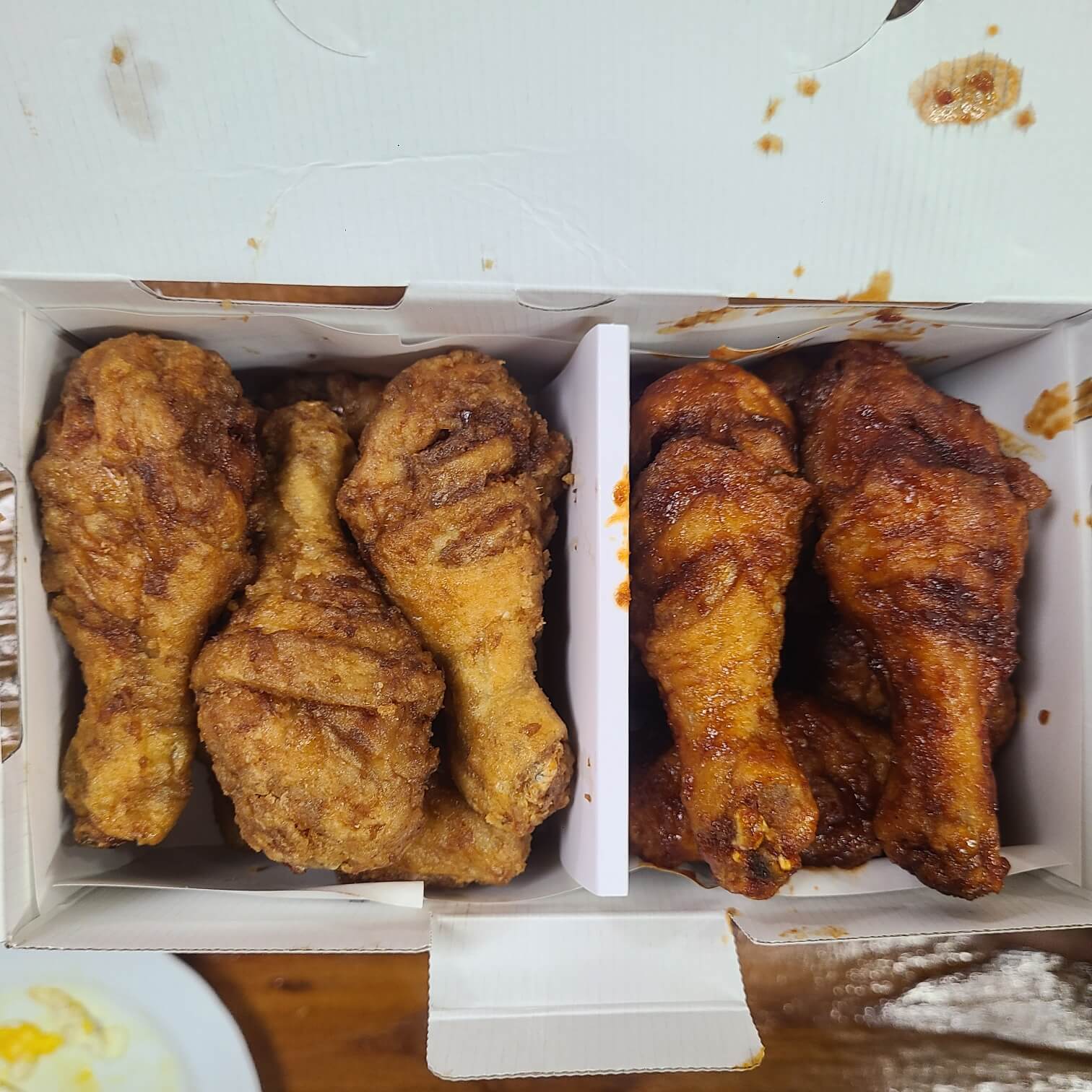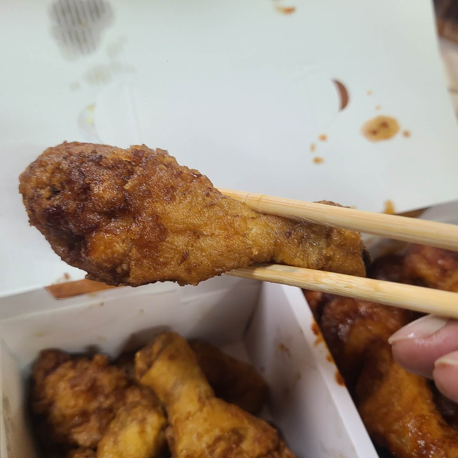짠맛은 너무 과하지 않았고 담백한 닭고기와 잘 어울렸습니다. 씹을수록 느껴지는 풍미도 좋았습니다. 교촌 반반콤보의 닭날개와 윙봉도 먹어봤는데 닭다리의 비해 닭날개와 윙봉은 조금 작은 사이즈였습니다.