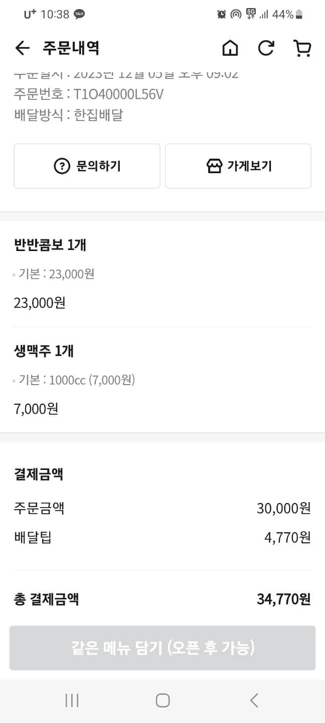 어떤 걸 먹을지 배달앱으로 교촌치킨 메뉴들을 보던 중에 '반반콤보'라는 게 눈에 들어왔습니다. 두 가지 맛을 즐길 수 있는 반반과 닭다리, 닭날개로 구성된 콤보의 조합인데 마늘 간장과 매콤한 양념에서 느껴지는 짠맛 매운맛의 조화가 좋을 거 같았습니다. 치킨 가격의 상승을 주도한 곳답게 가격은 23,000원으로 좀 비싼 편이고 배달비 4,770원으로 생맥주 7,000원까지 합해 34,770원을 결제했습니다.(2023년 12월 중순 기준)