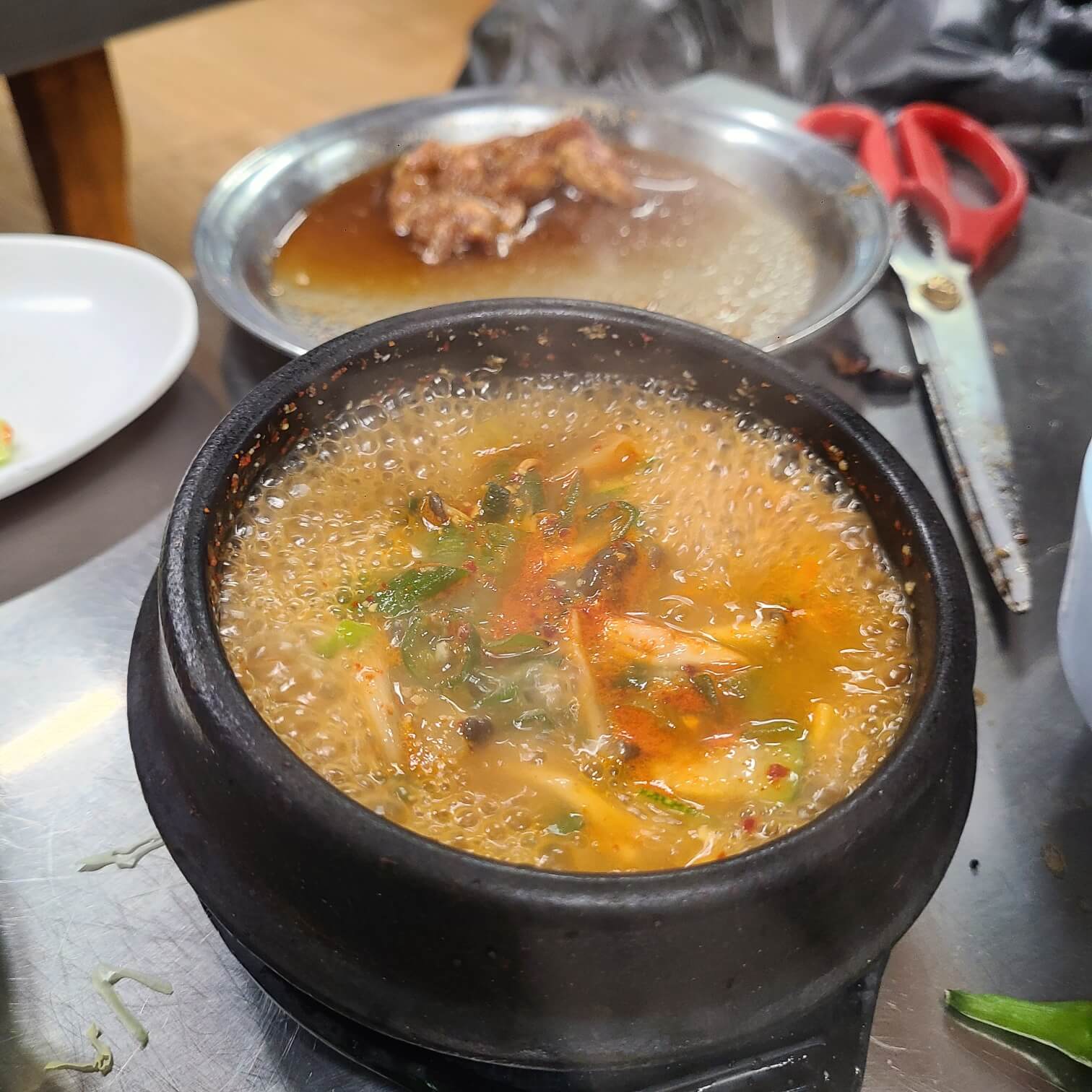 된장찌개도 같이 주문했는데 천 원이지만 서비스와 돈 내고 주문하는 찌개는 다른 느낌이었습니다. 야채, 두부도 괜히 더 가득 든 느낌이었습니다. 심플한듯하지만 찌개에 밥을 함께 먹으니 정말 맛있었습니다. 너무 짜지도 않아서 소주와도 잘 어울렸습니다.