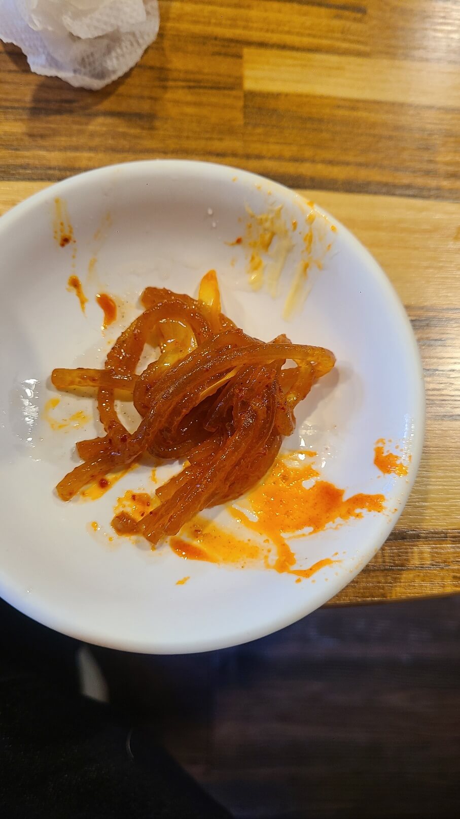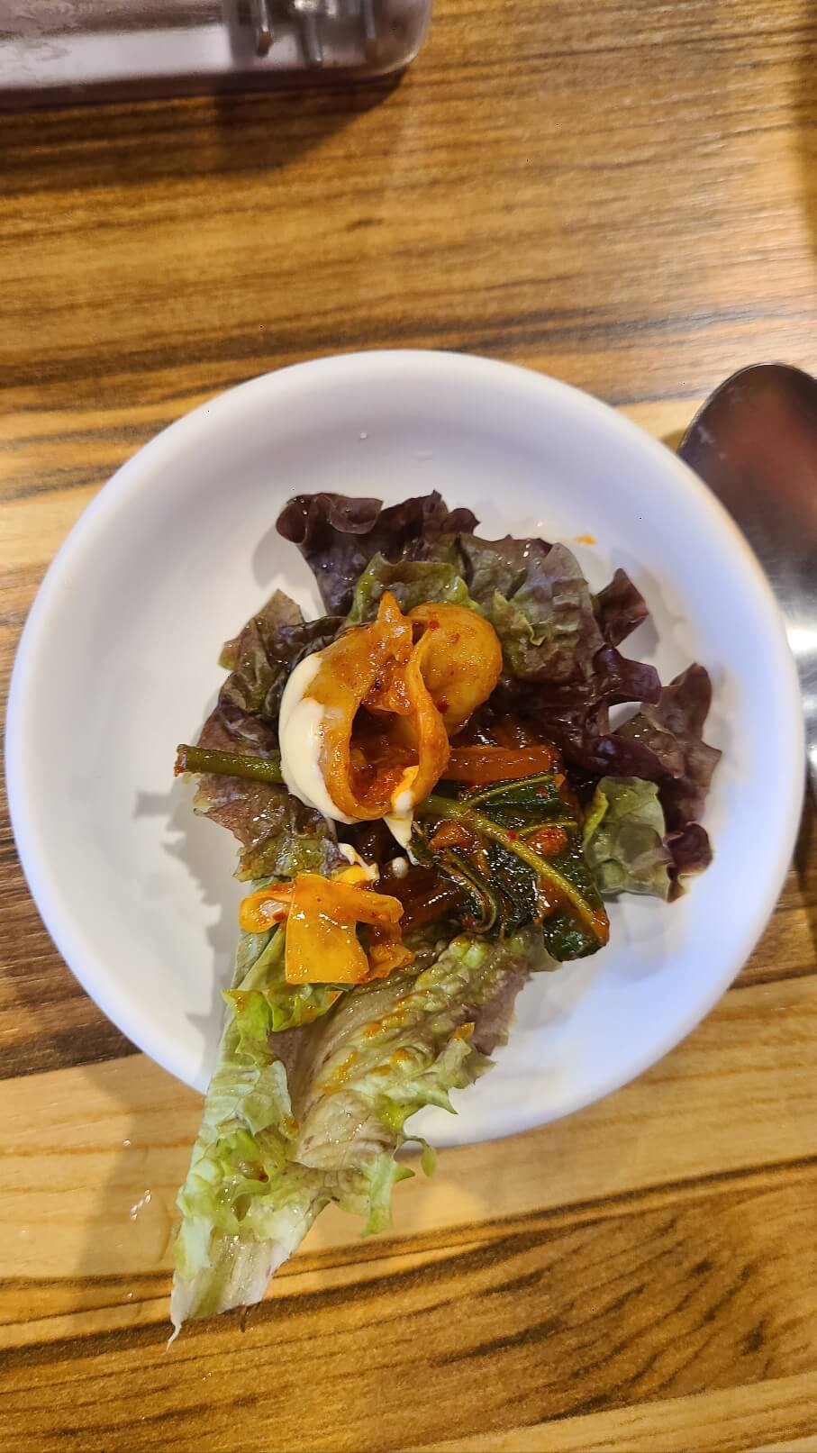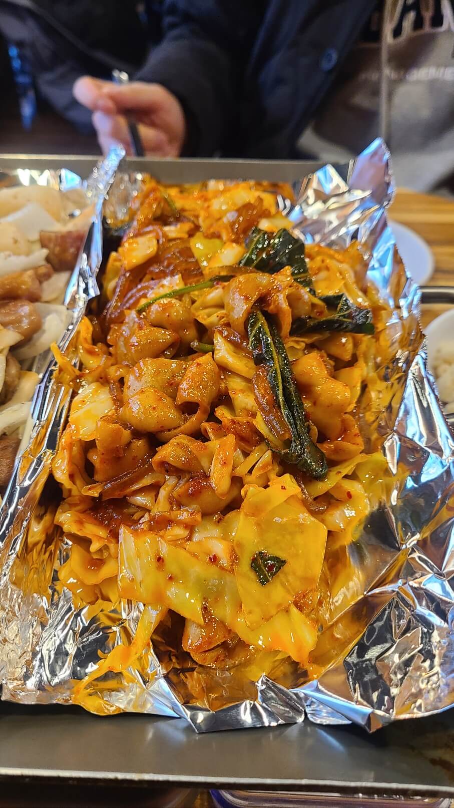 야채곱창은 쌈 싸 먹어도 맛있었고 당면이 들어가 있었는데 당면도 맛있었습니다. 그리고 곱창의 식감이 너무 질기지 않고 부드러웠습니다. 그리고 양배추나 당면과도 잘 어울렸습니다.