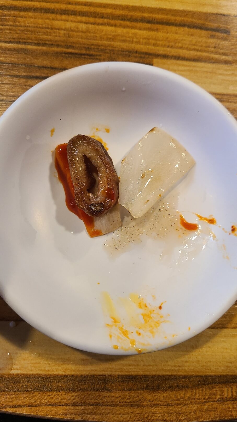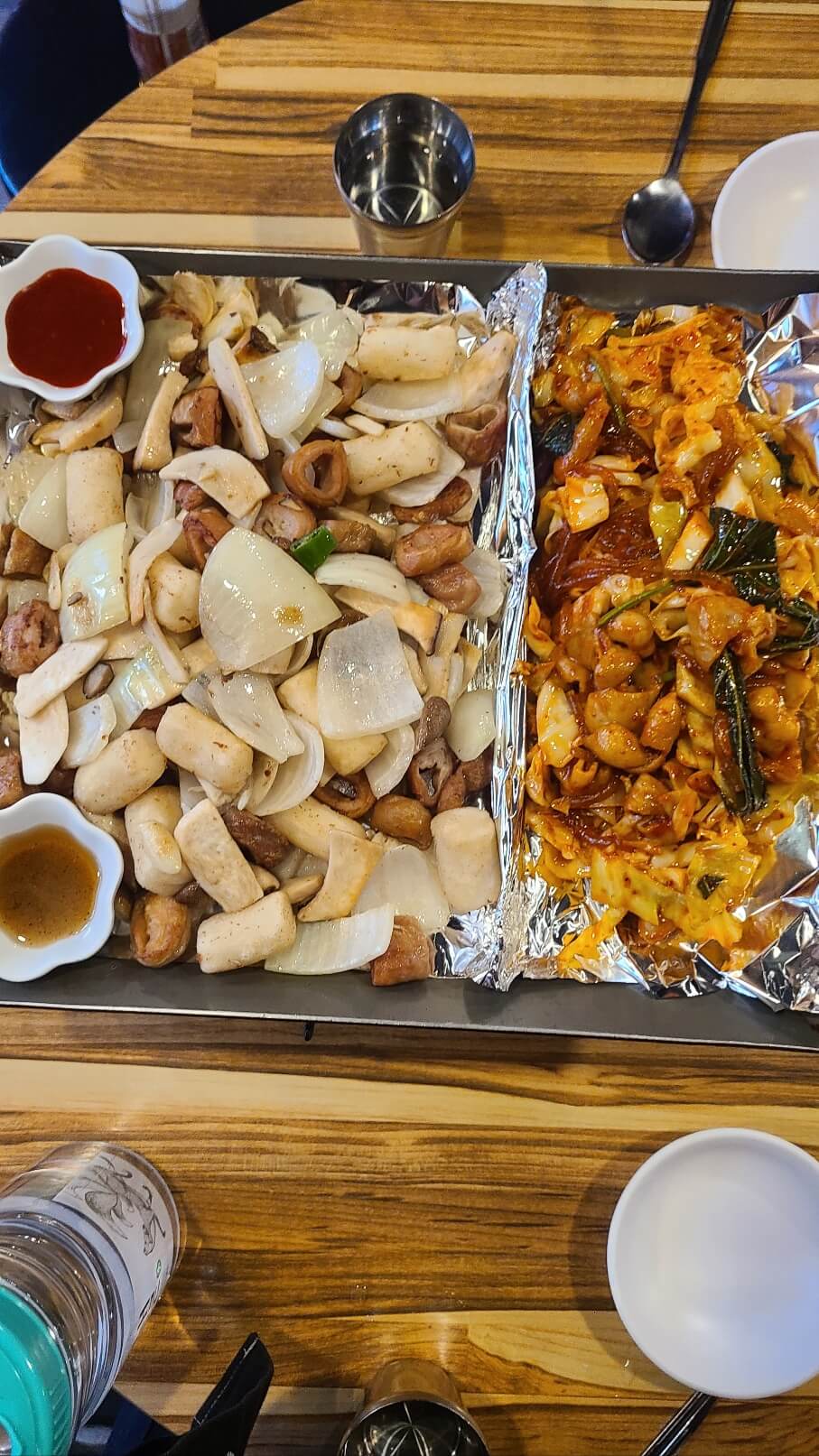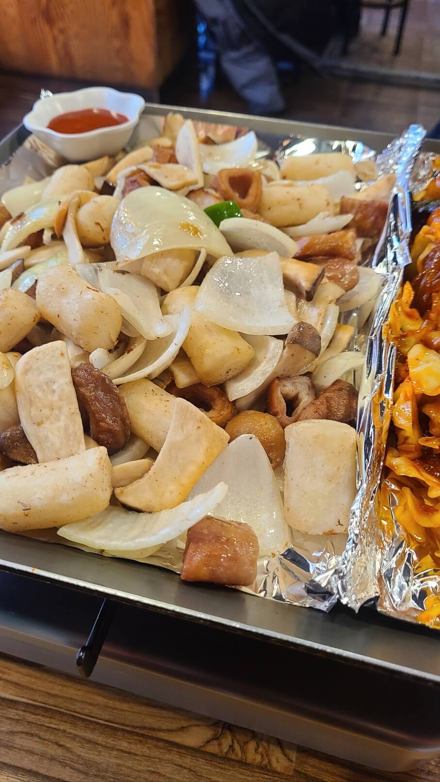 야채곱창은 쌈 싸 먹어도 맛있었고 당면이 들어가 있었는데 당면도 맛있었습니다. 그리고 곱창의 식감이 너무 질기지 않고 부드러웠습니다. 그리고 양배추나 당면과도 잘 어울렸습니다.