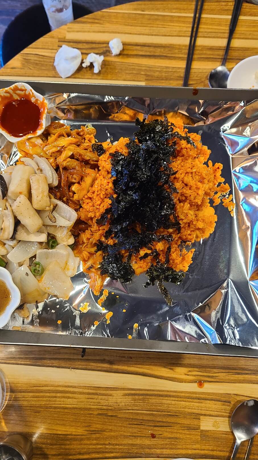 곱창 하고 막창을 거의 다 먹어갈 때 즈음 볶음밥을 시켰습니다. 1인분을 시켰는데 양이 엄청 많았습니다. 도란도란 곱창은 볶음밥도 가성비도 좋고 푸짐했습니다. 볶음밥은 꾹꾹 눌러서 밑부분을 누룽지로 만들어 먹는 게 감칠맛이 더 좋았습니다. 도란도란 곱창에서 막창과 곱창을 먹고 볶음밥을 안 먹었으면 후회할 뻔했습니다.