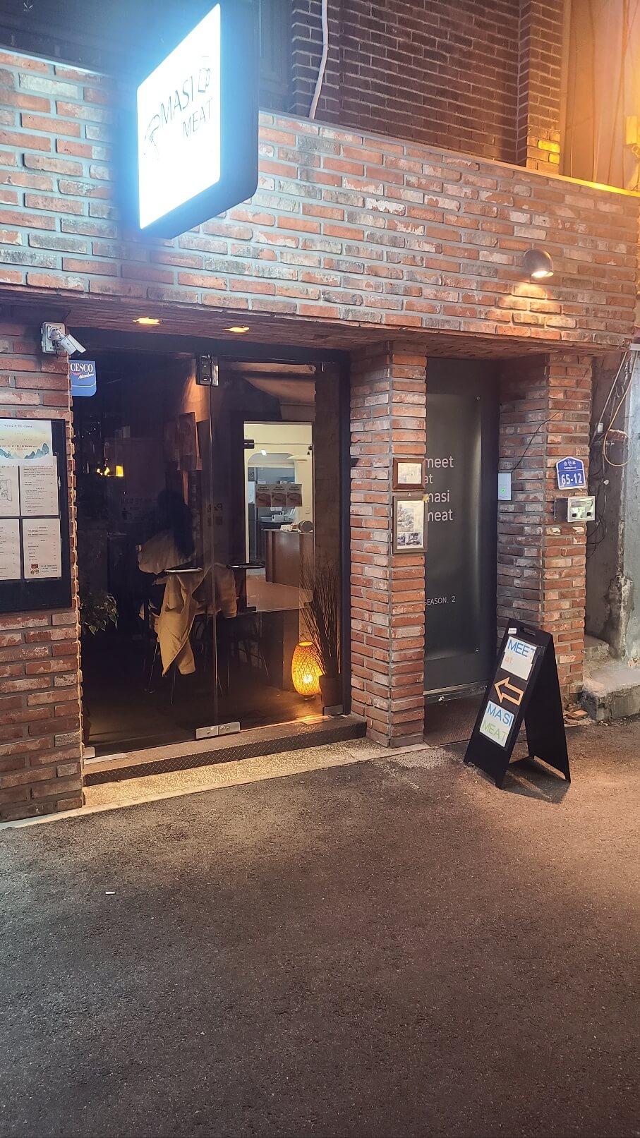 마시미트 매장 내부는 크지 않은데, 입구 쪽에 손님이 앉아있어서 못 찍었는데 안에서 밖이 잘 보이는 유리로 되어있어서 엄청 답답하지는 않았습니다. 그리고 벽면 페인트칠과 노란색 조명이 합쳐져서 꽤나 멋스러웠습니다.