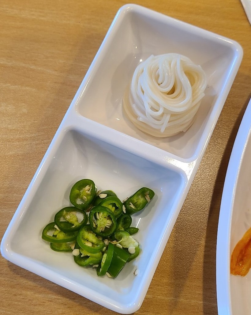 임실순대국의 밑반찬으로 나오는 김치랑 깍두기도 순대국하고도 잘 어울리는 김치랑 깍두기였고 밑반찬이었지만 맛이 일품이었습니다. 그리고 임실순대국은 소면과 부추를 주는 게 포인트였습니다. 밥말기 전에 소면을 먼저 어느 정도 먹고 밥과 함께 말아먹으면 10,000원으로 든든한 한 끼가 되었습니다.