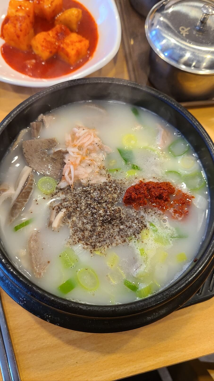 그냥 순대국을 시키면 그냥 고기랑 순대 다 같이 나오는 순대국입니다.곱창순대국도 있고 돼지곱창전골도 있습니다. 저는 소곱창전골보다 오히려 돼지곱창전골을 더 좋아하는 편인데 나중에 돼지곱창전골도 먹으로 재방문해야겠습니다.