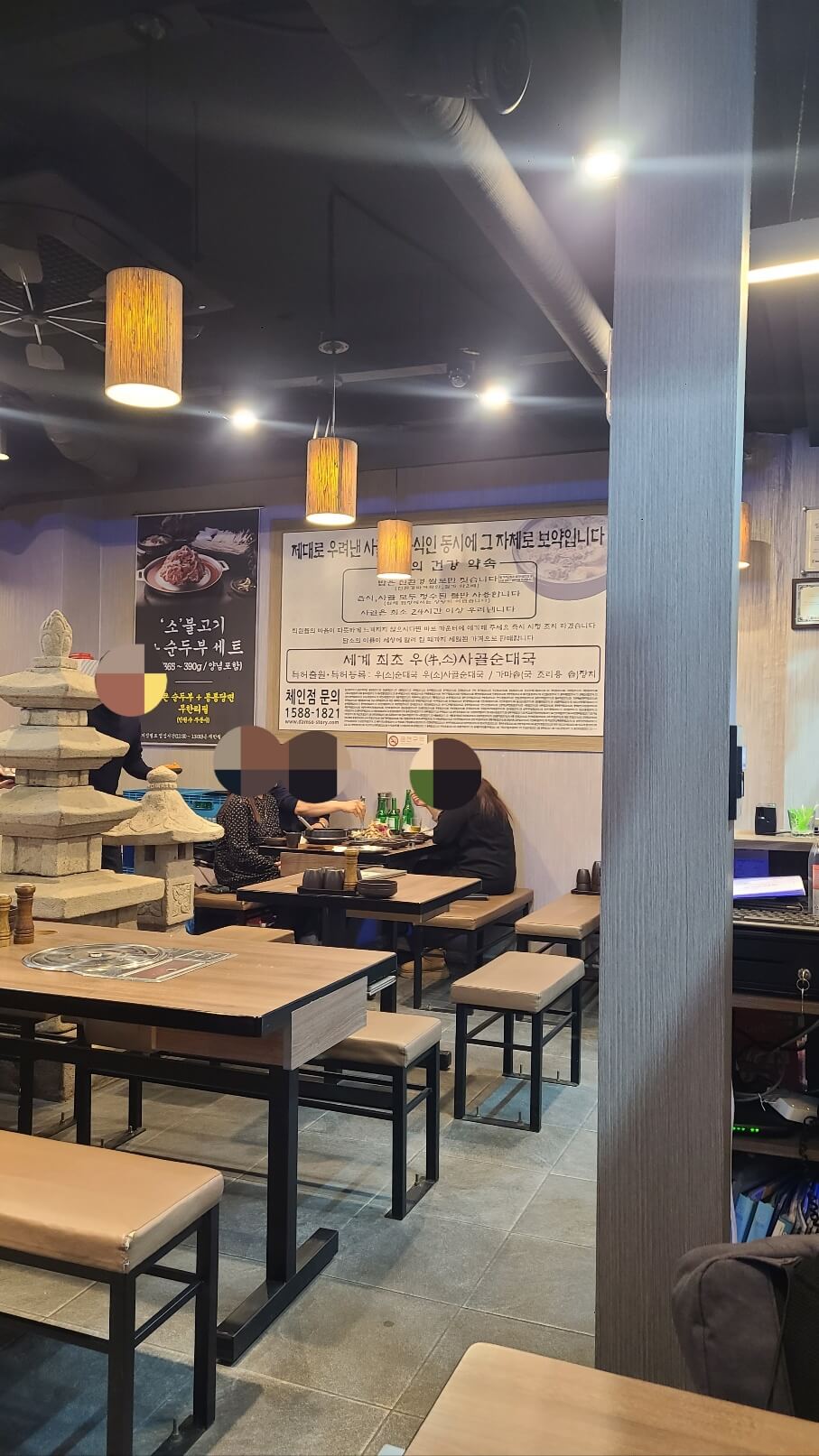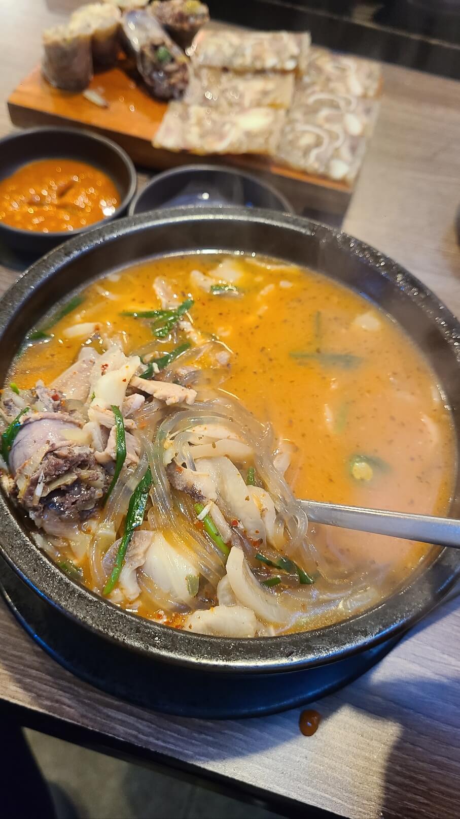 내부는 청결하고 관리가 잘 된 느낌이었습니다. 테이블도 깨끗하고 자리마다 수저, 젓가락, 티슈가 준비되어 있었는데 수저 젓가락도 깔끔했고 수저통과 휴지도 비어 있지 않게 준비가 잘 되어있었습니다. 작은 테이블도 있어서 저같이 혼자 와도 부담스럽지 않았습니다. 담소 소사골 순대 육개장은 가게 이름처럼 육개장과 순대국의 육수를 소사골로 우려낸 육수라서 진하고 감칠맛이 풍부했습니다.