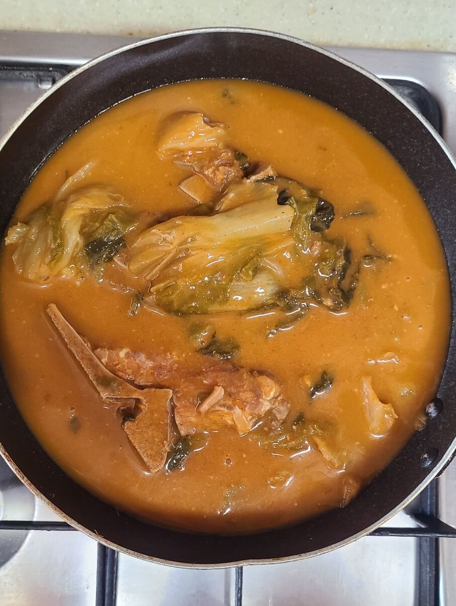 조리방법도 그냥 냄비에 넣고 끓이기만 하면 되기 때문에 조리 난이도도 라면 끓이기랑 비슷합니다. 처음 뜯어보고 끓이려고 냄비에 부어봤는데 뼈 양이 적은 건 아니지만 1000g의 양에 비해서는 뼈양이 조금 적어 보였습니다. 그래도 국물양과 우거지가 푸짐하게 들어있어서 건더기가 적게 들어가 있다고 생각이 들지 않았고 뼈크기는 작았지만 살코기가 많이 붙어있어서 양이 적은 건 아니었습니다. 1.5인분 양정도 됩니다. 성인 남자 기준으로 봐도 양이 상당했습니다. 원래 감자탕은 등뼈를 사용하지만 에드워드권 감자탕은 돼지목뼈가 들어 있습니다.