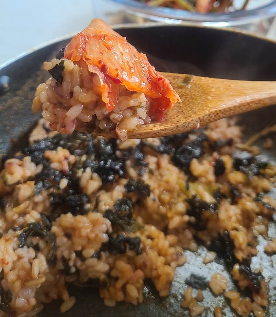 국물에 밥을 말아서 먹을까 라면을 끓여 먹을까 밥을 볶아 먹을까 하다가 마지막에 김가루와 참기름을 넣어서 볶음밥을 만들어서 김치와 파김치를 올려서 먹었는데 정말 맛있었습니다. 에드워드권 참 맛있는 감자탕은 가격도 1팩 4,000~7,000원인데 가격도 저렴하고 만족스러웠습니다. 가격에 비해 우거지도 많고 돼지목뼈도 가격에 비해 양도 많았고 국물맛도 맛있어서 만족스러운 감자탕이었습니다. 돼지목뼈는 스페인산이지만 사골농축액은 국내산 사골과 소잡뼈 또한 국내산이어서 그런가 국물맛이 진하고 감칠맛 느껴지는 맛있는 국물이었고 진하면서 얼큰함이 많이 느껴지는 국물맛이어서 술 많이 마시고 다음날 끓여 먹으면 아주 든든하게 해장도 잘 될 거 같았습니다. 그냥 끓여 먹어도 맛있겠지만 후추나 깻잎 감자를 넣어서 먹으면 더욱 맛있을 것 같습니다.