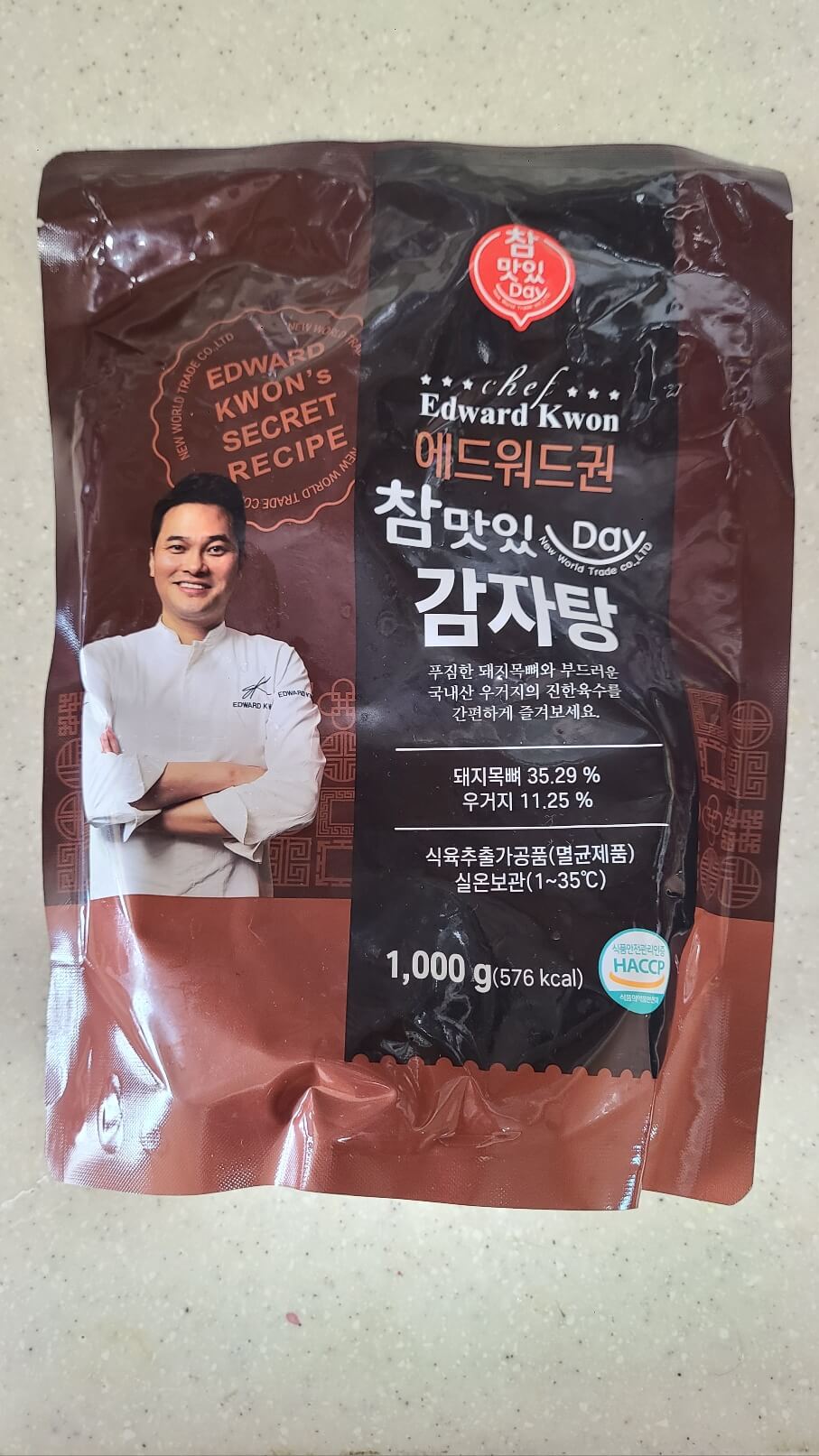 저는 밥을 가게에서 먹고 오는 경우도 있어 먹는 걸 미루는 경우가 많아 도착하고 유통기한을 먼저 확인을 해보았는데 2025년 1월이라 기한은 넉넉했습니다. 에드워드 권 참 맛있는 감자탕은 1000g 576kcal로 용량대비 이 정도 칼로리면 나쁘지 않다고 생각이 들었습니다.